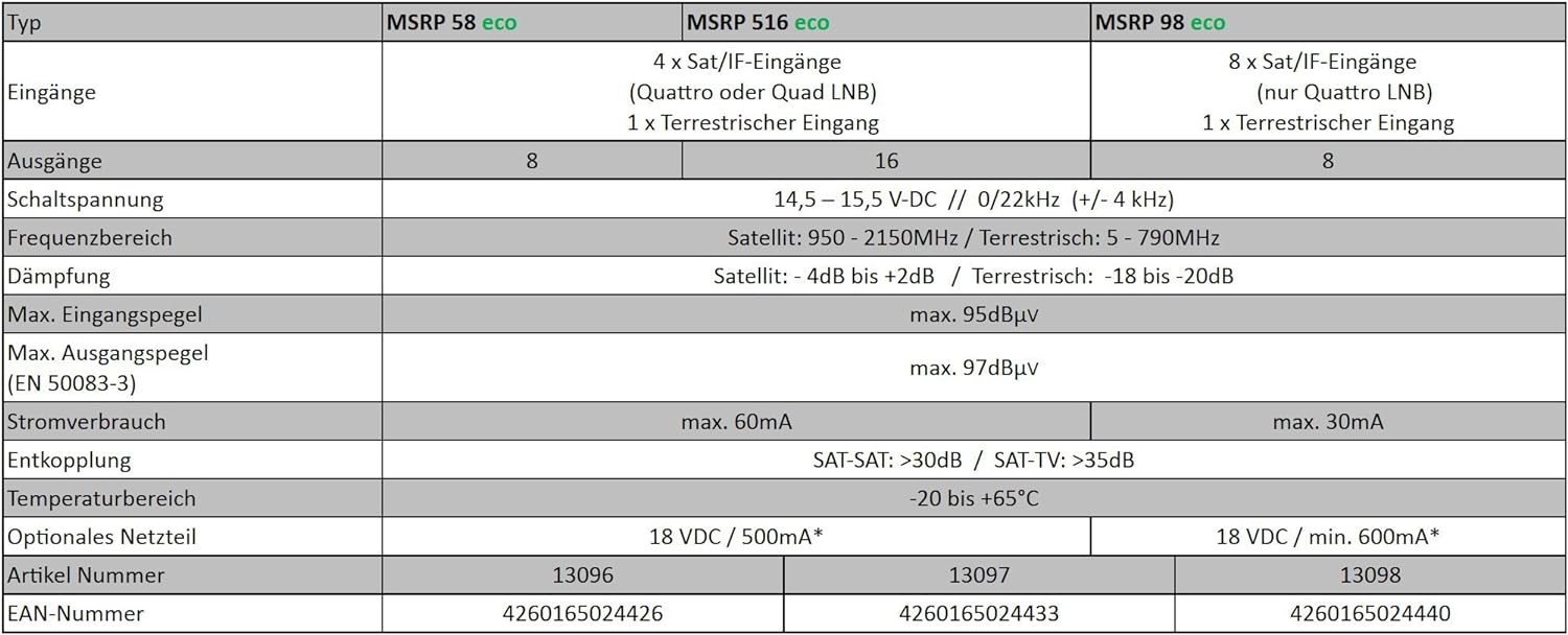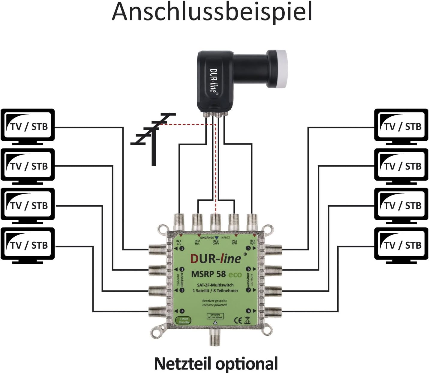 - Zum Empfang von 1 Satellit(z.B. Astra oder Hotbird) für bis zu 8 Teilnehmer