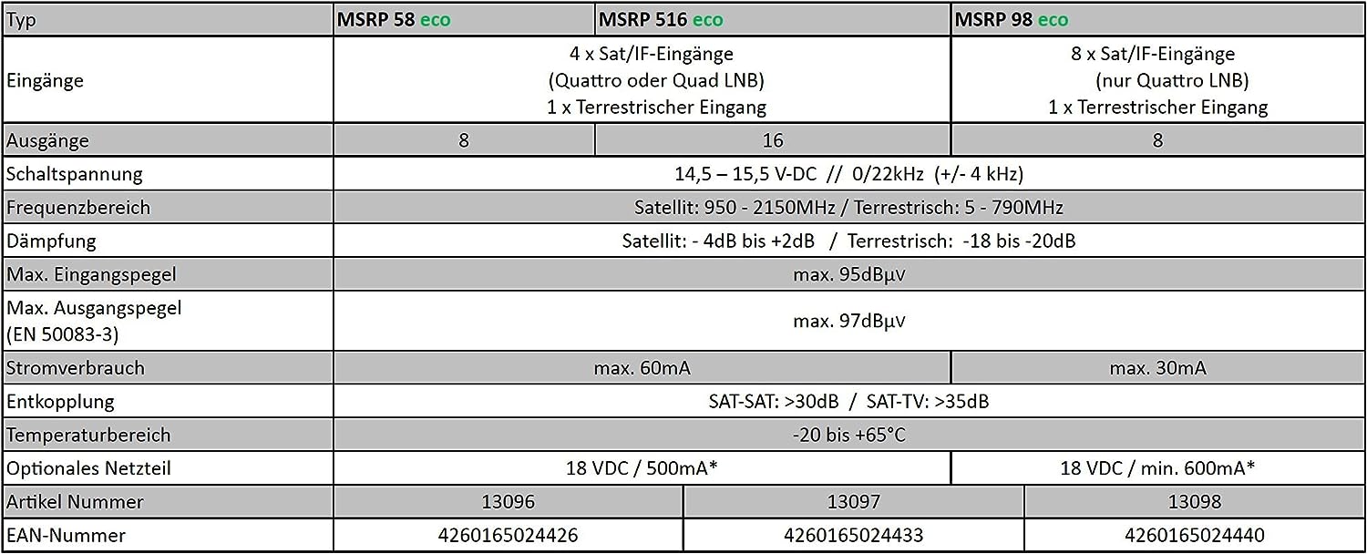 - Zum Empfang von 2 Satelliten(z.B. Astra oder Hotbird) für bis zu 8 Teilnehmer