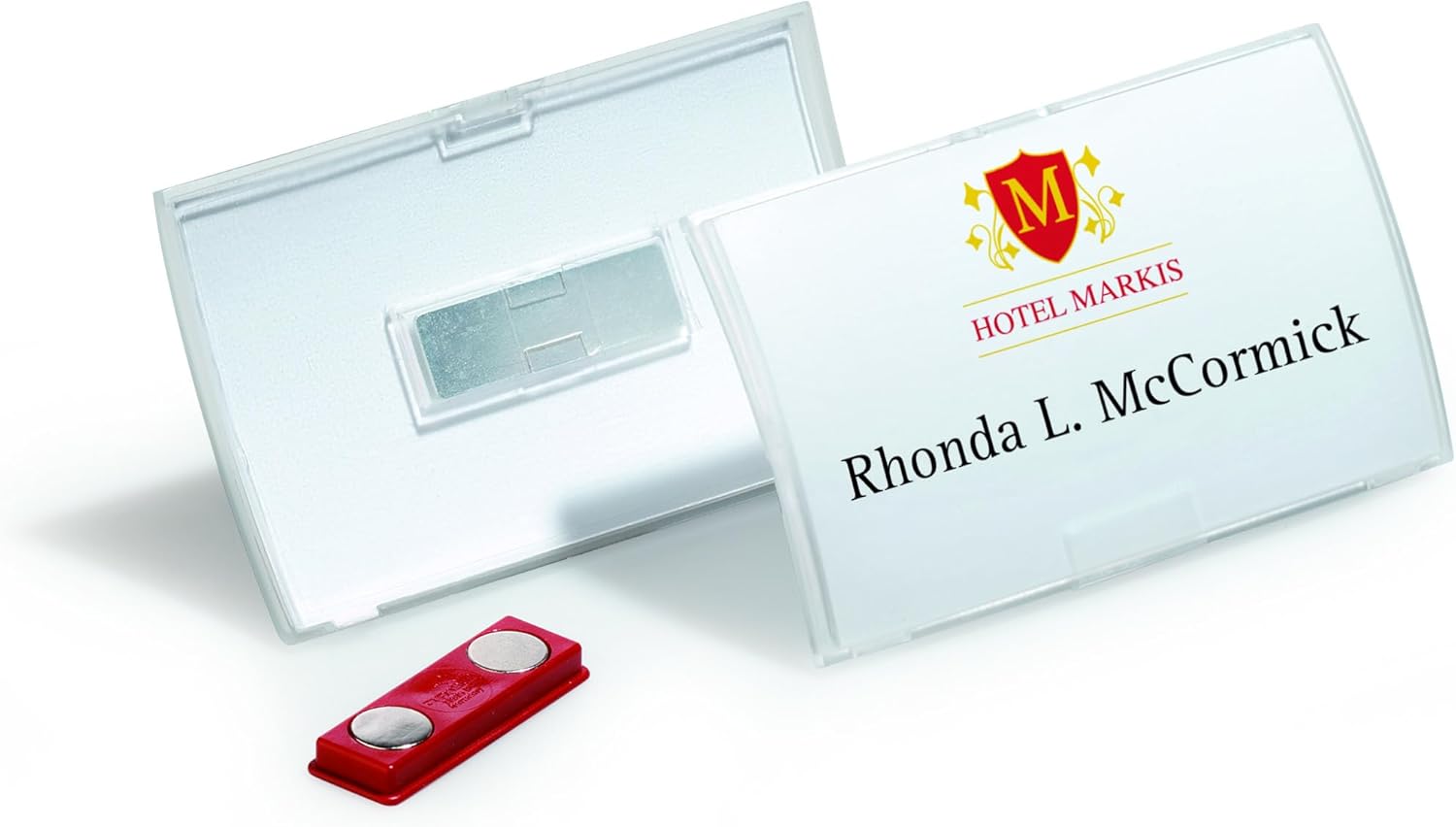 - Namensschild CLICK FOLD mit Magnet für materialschonendes Befestigen an Textilien, für Format 54 x 90 mm (H x B)