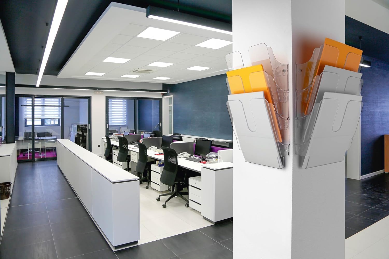 - Wandprospekthalter FLEXIPLUS Duo mit 6 Fächern für Informationen im Format A4