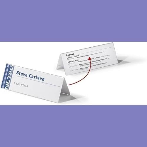 • Tischnamensschild Acryl transparent; Mit auswechselbaren blanko Papiereinlagen: 61/122 x 150 mm; Lieferumfang: 10 Stück