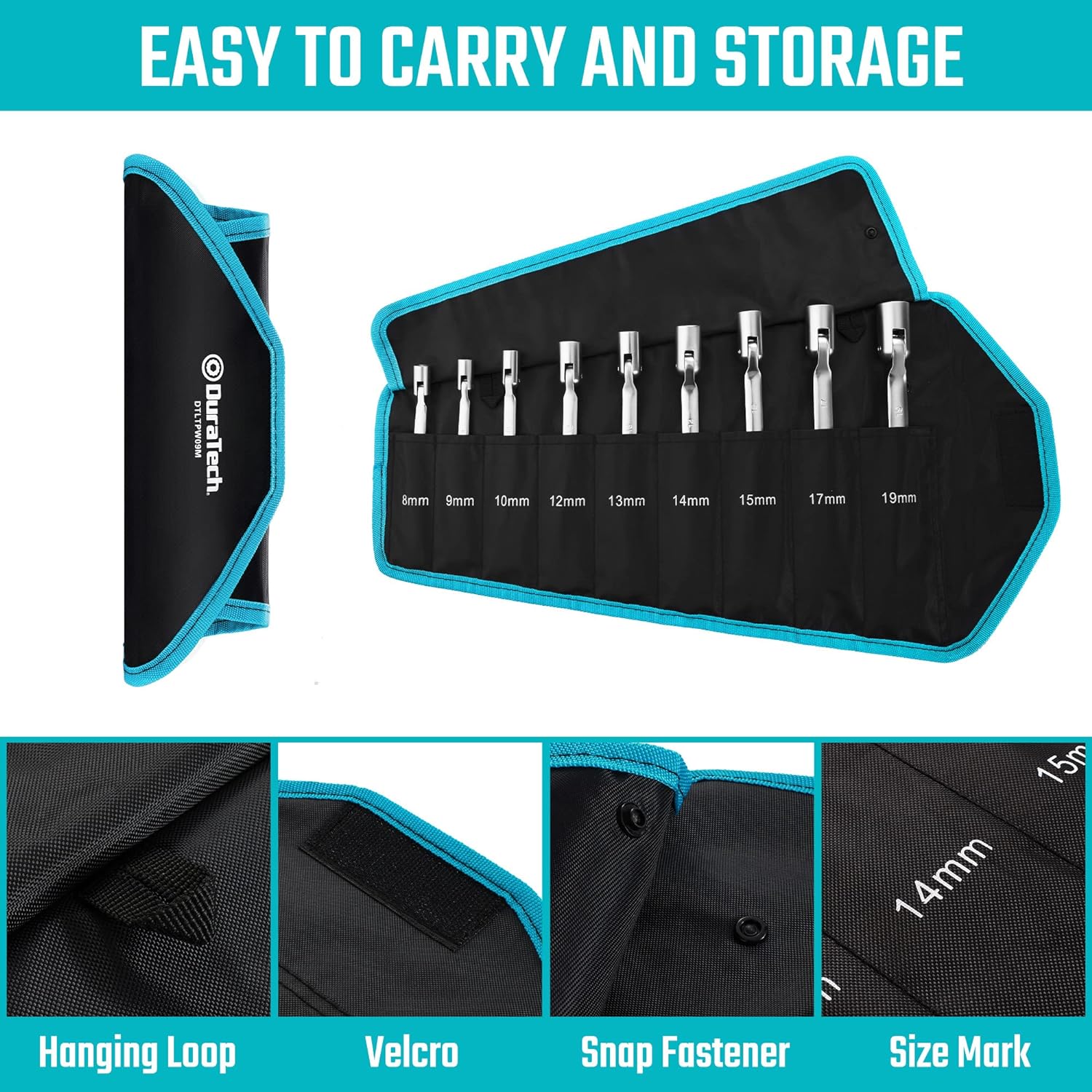 - 【Mit Aufbewahrungstache】Das Schraubenschlüssel-Set wird mit einer Rolltasche zur bequemen Aufbewahrung geliefert. Die Tasche hat eine eindeutige Schlüsselgrösse, die für eine einfache Organisation aufgedruckt ist. Auf der rechten Seite des