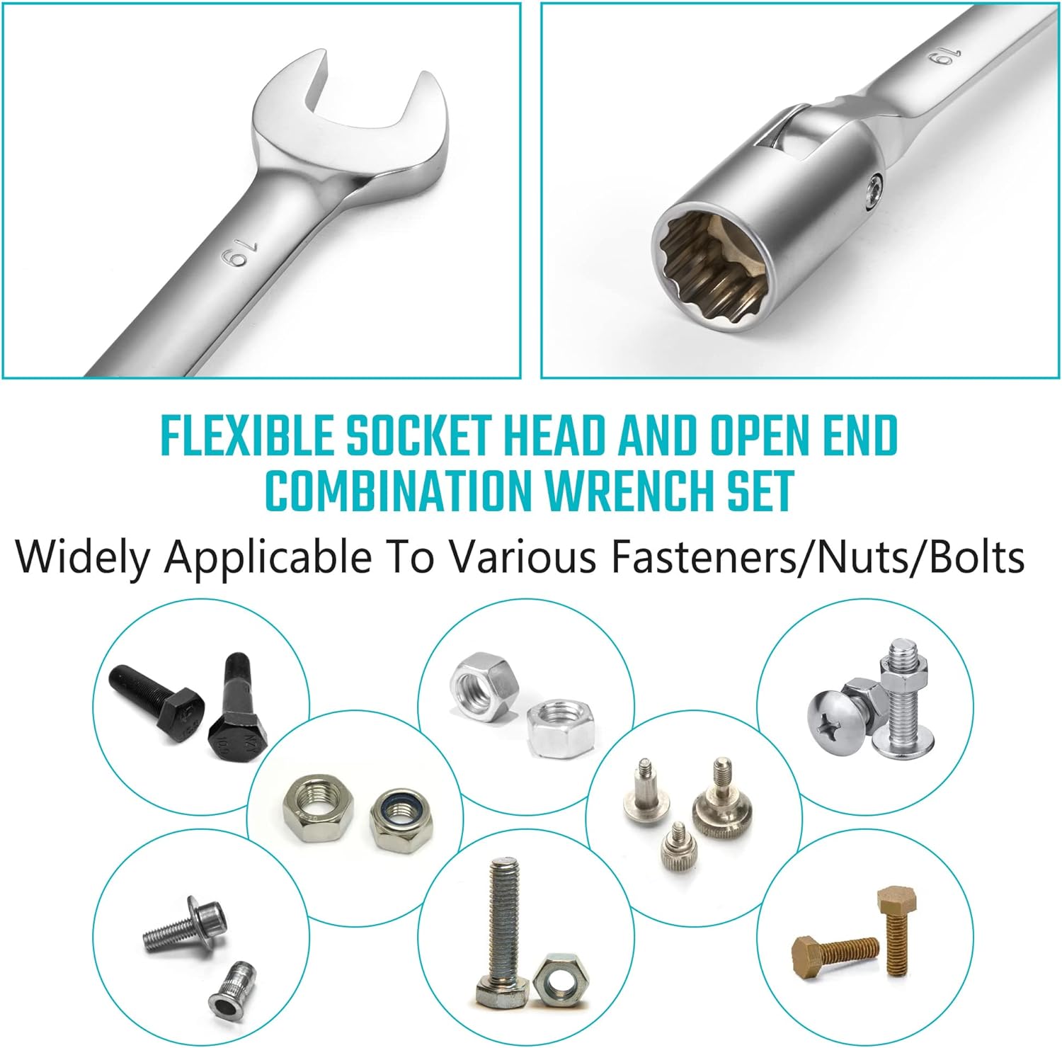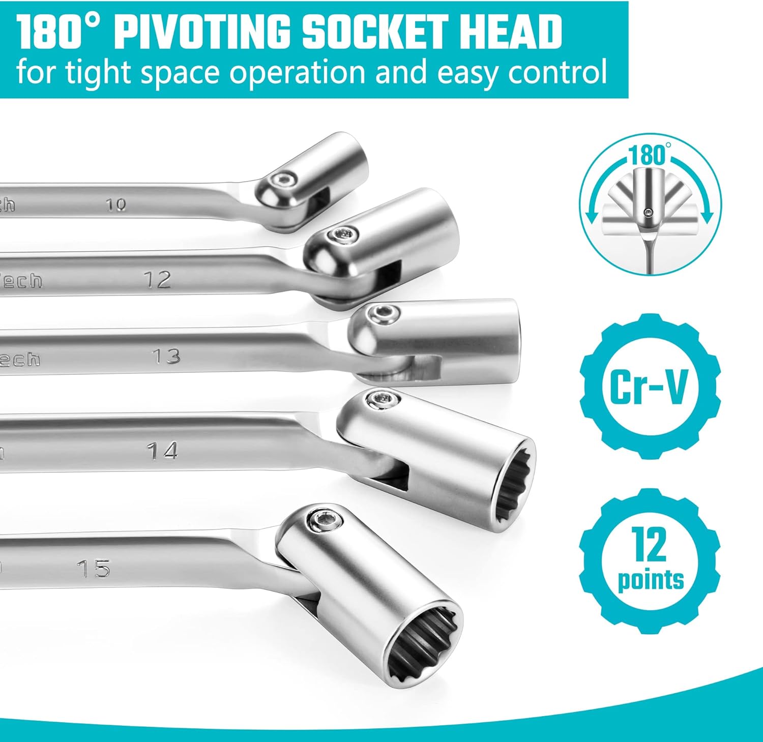 - 【Flexkopf-Design】Das um 180 Grad schwenkbare Flexkopf-Design hilft Ihnen, Muttern oder Befestigungselemente auf engstem Raum leicht zu erreichen und zu kontrollieren, wodurch Ihre Arbeit müheloser wird.