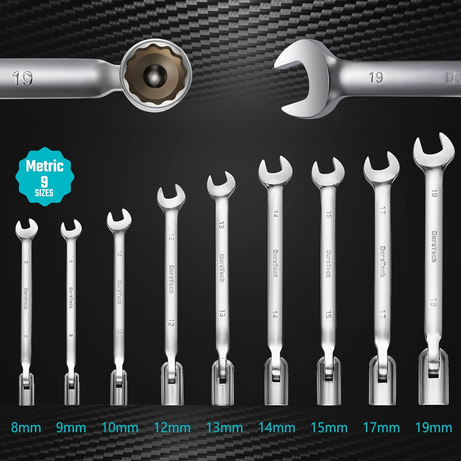 - 【Spezifikationen】 Die Schlüsselweiten vom 9-Teiligem Schraubenschlüssel-Satz sind zur leichteren Identifizierung auf beiden Seiten des Griffs doppelt eingestanzt: 8mm, 9mm, 10mm, 12mm, 13mm, 14mm, 15mm, 17mm, 19mm. Perfekt für Anfänger oder