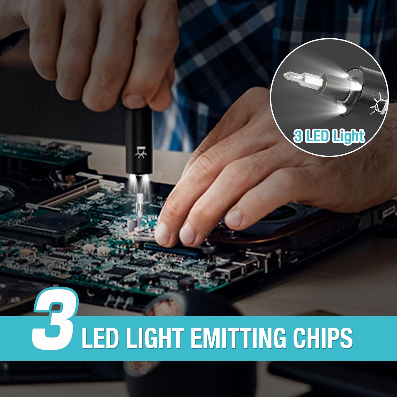 - 【Breite Anwendung】Der Schraubendreher Satz ist sehr geeignet für Reparaturen von Computern, Laptops, Tablets, Smartphones, Brillen, Uhren, Spielzeug, Kamera Reparatur und anderer Elektronik. Der wiederaufladbare 700mAh Lithium-Akku ist dank Micro-B