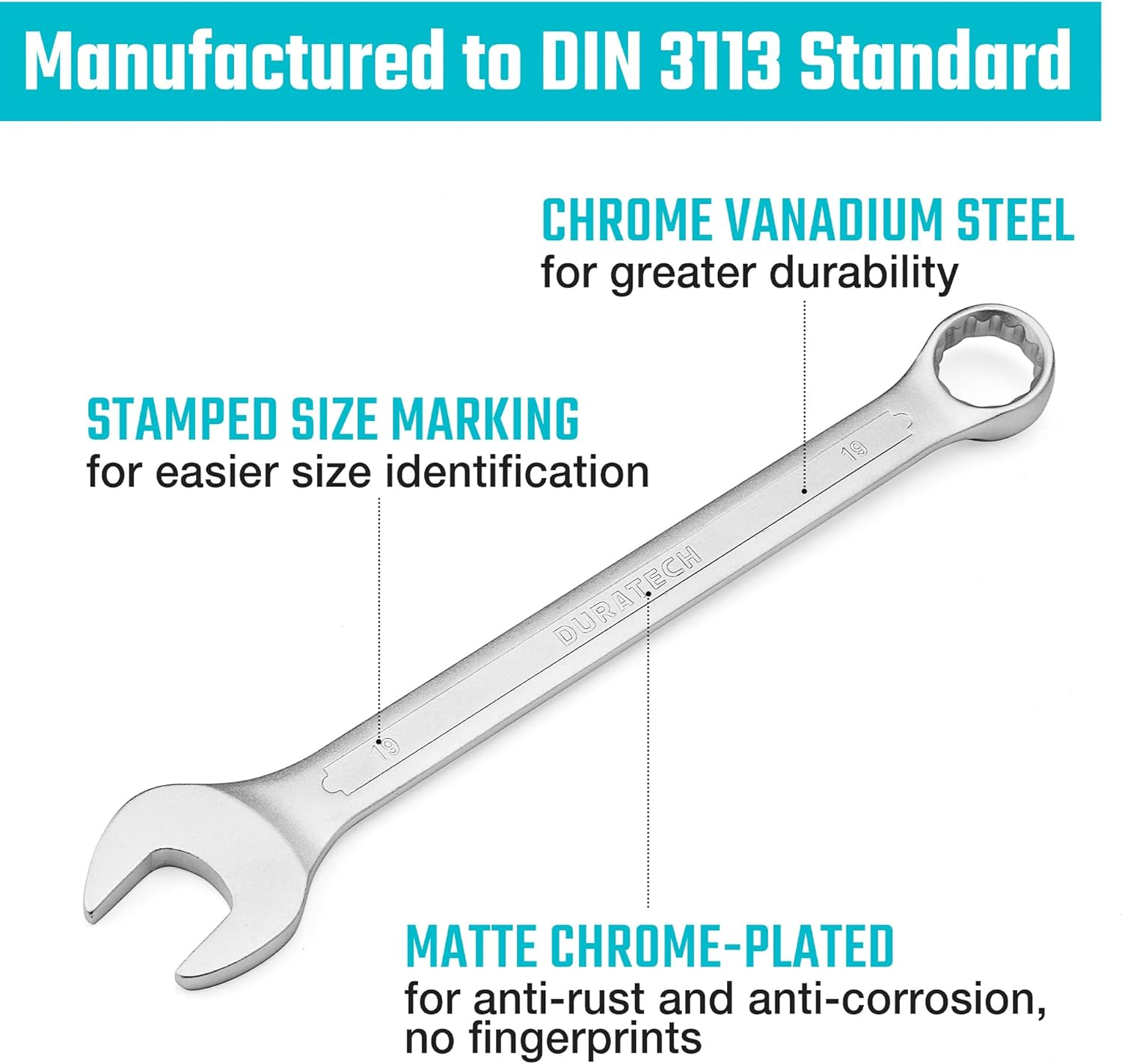 • 【Hohe Qualität】Dieser Ringmaulschlüsselsatz ist aus hochwertigem Chrom-Vanadium-Stahl gefertigt, mit einer mattverchromten Oberfläche, rostbeständig und langlebig, im Vergleich zu polierter Oberflächen weniger Schmutz und Fett hinterlässt.