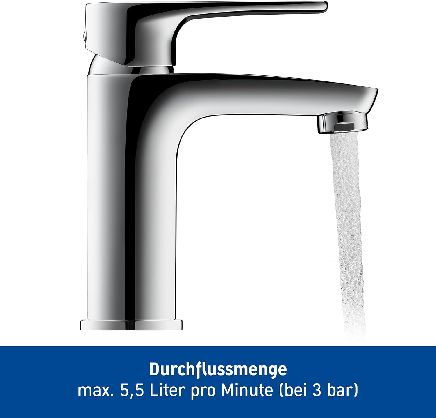 • Wassersparend: Durchflussmenge von max. 5.5 Liter pro Minute (bei 3 bar)