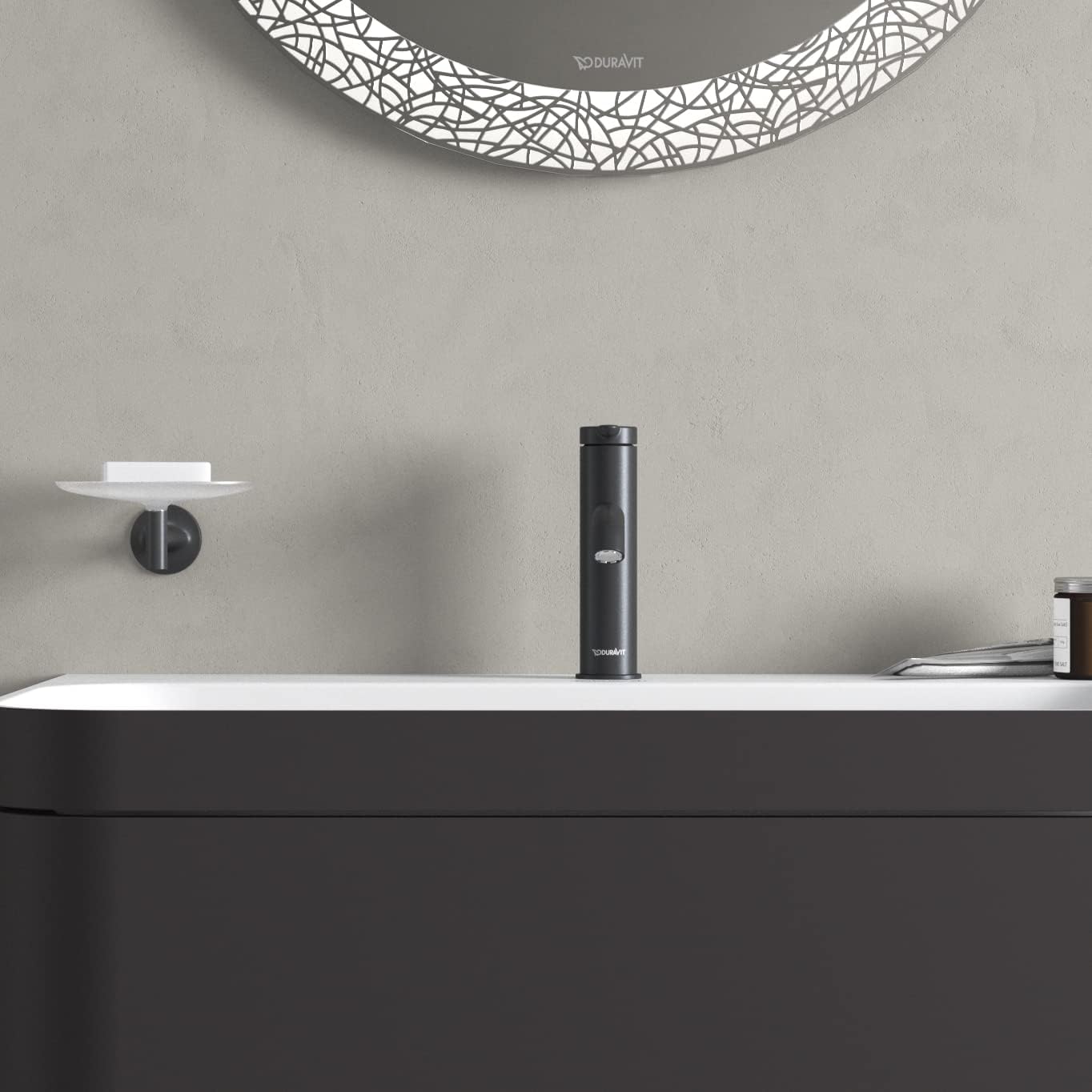 - Aus der Design-Armaturenlinie C.1, entworfen vom Designer Kurt Merki Jr.; In der Trendfarbe Schwarz Matt. Der erhöhte Auslauf sorgt für grosszügige Bewegungsfreiheit zwischen Becken und Armatur.