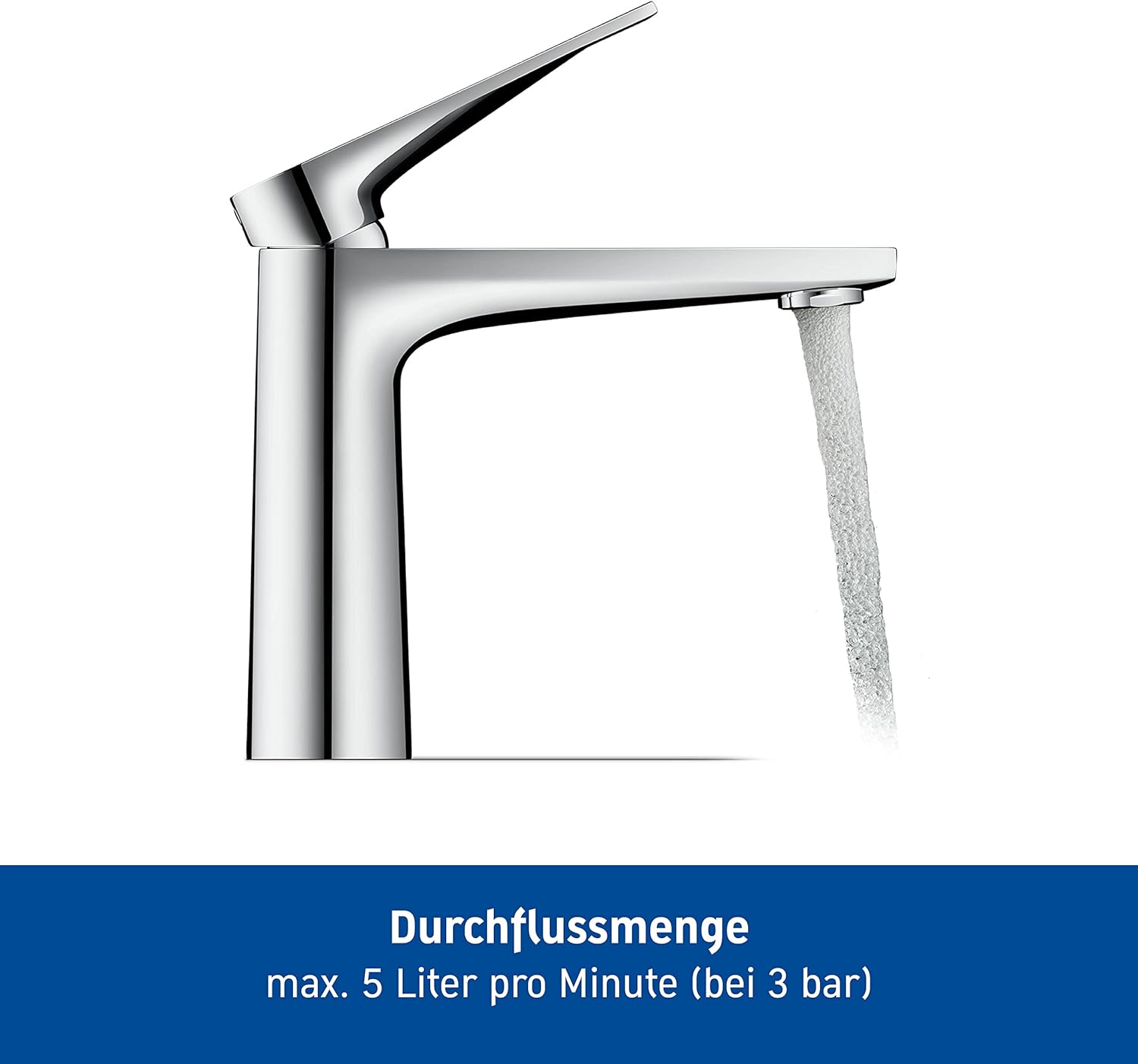 • Mit einer Durchflussmenge von max. 5 Liter pro Minute (bei 3 bar) ist die Waschtischarmatur gleichzeitig wassersparend und besitzt einen voluminösen Strahl.