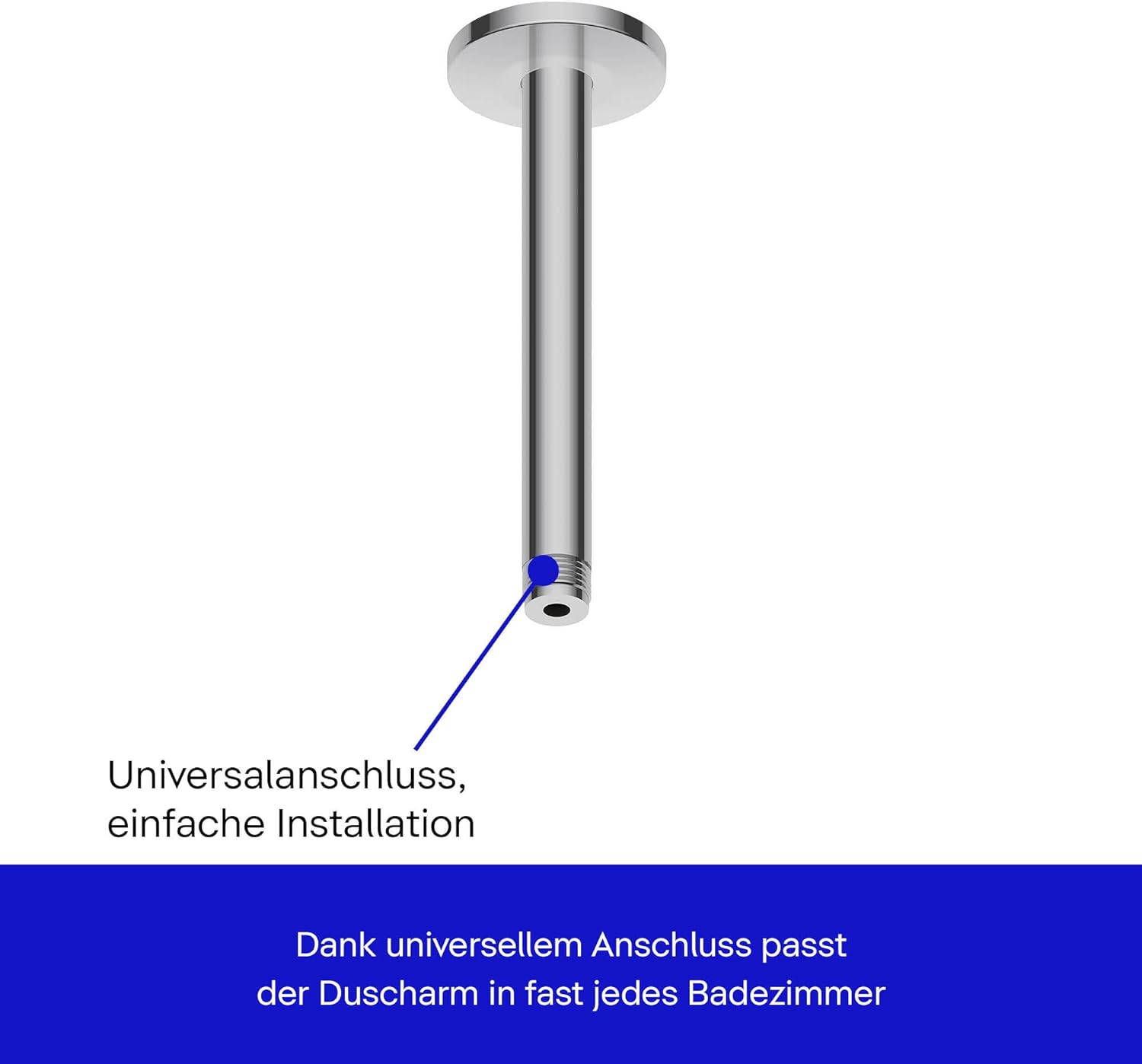 - Universelle Passform und einfache Montage: Der Duscharm hat ein genormtes Anschlussmass (G 1/2; DN15) und passt somit in fast jedes Badezimmer. Die Montage erfolgt einfach und schnell.