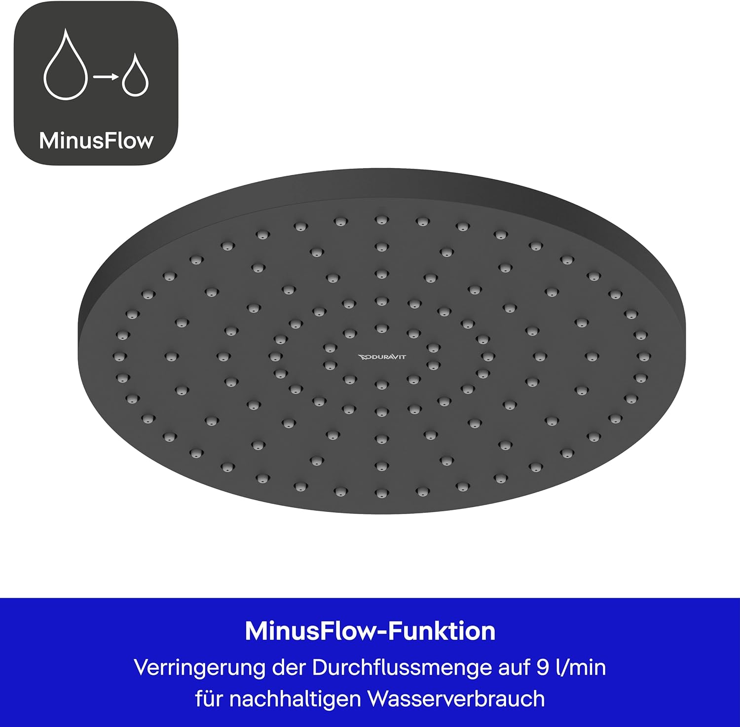 - Wassersparende MinusFlow-Funktion: Verringerung der Durchflussmenge auf 9l/min, wodurch der Duschkopf besonders wassersparend ist. Die Kopfbrause ist im Winkel verstellbar (+/- 20°) und somit für jedes Duschbedürfnis geeignet.
