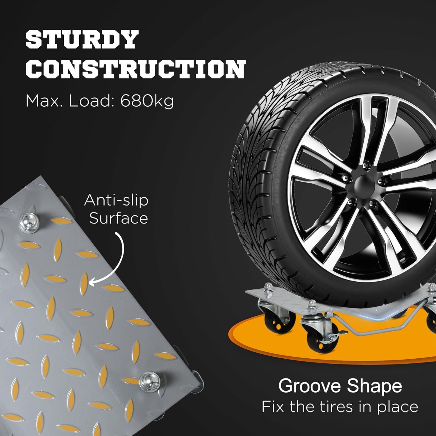 DURHAND Rangierheber 2 Stücke 680Kg Rangierhilfe Reifenwechsel Wagenheber mit 4 Rollen für Auto PKW