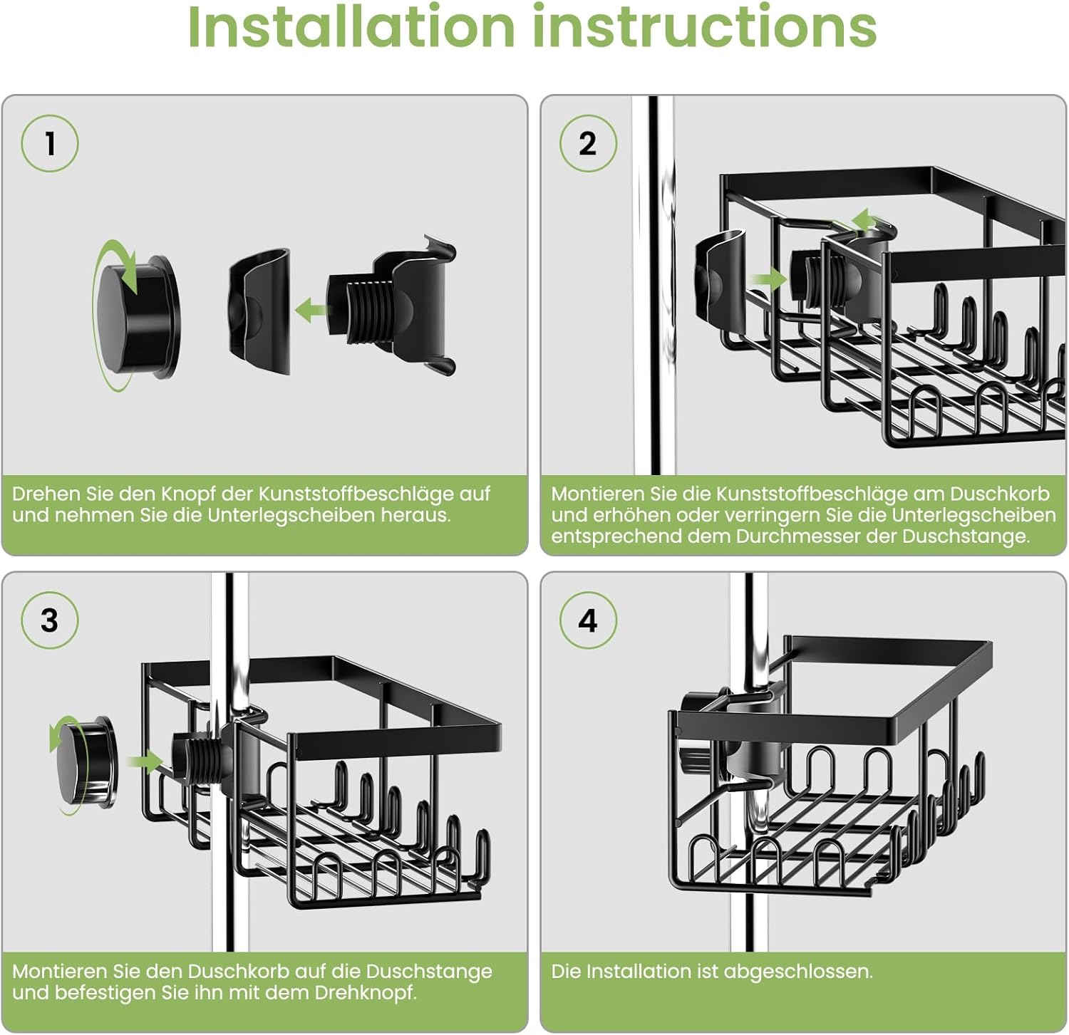 - Praktische Aufbewahrung: Die duschablage duschstange ausreichend Platz für Duschgel, Shampoo, Seife, Handtücher und mehr. Ein zusätzliches Haken-Design für noch mehr Stauraum.