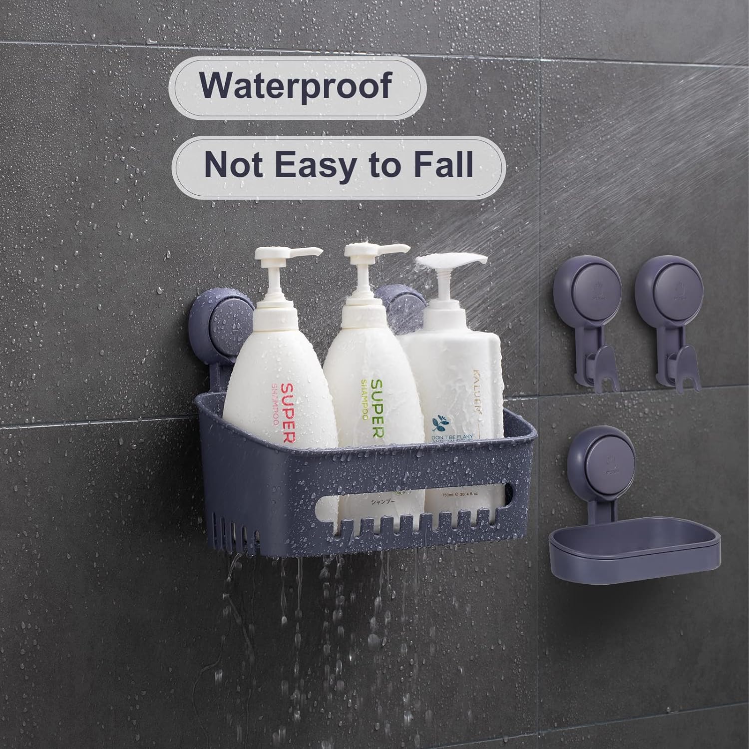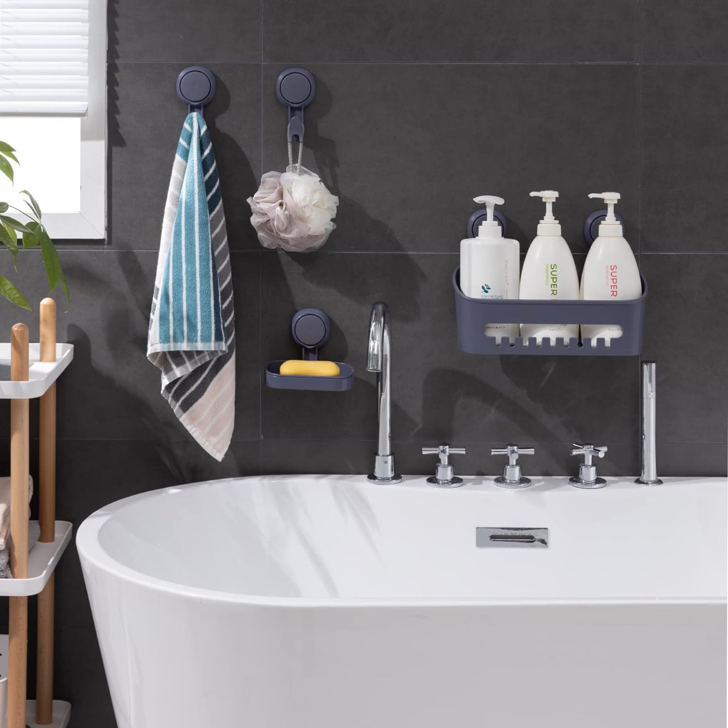 Variante: Duschablage+Seifenschale+2xSaugnapf Grau-4 in 1 Set
