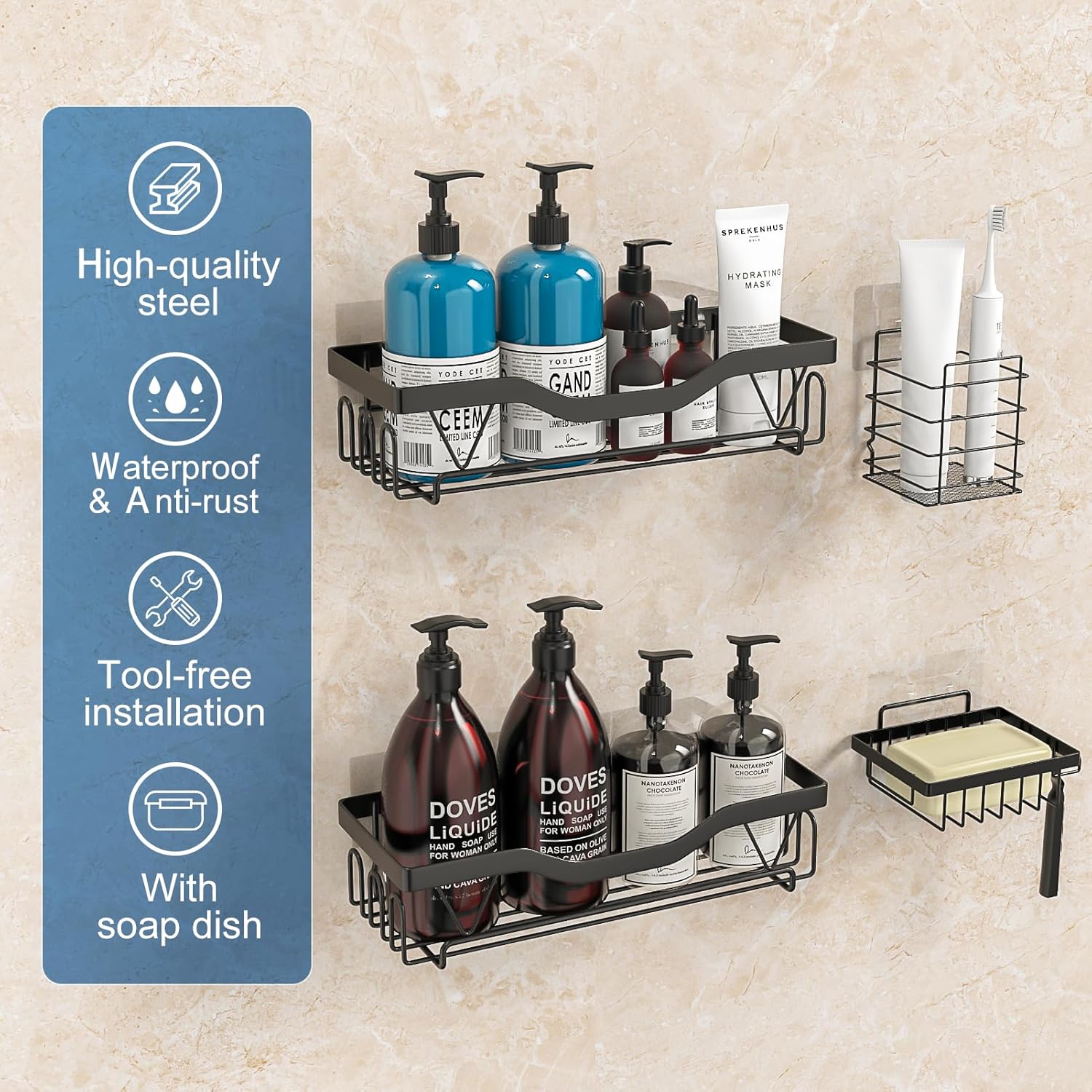 - 【4er-Pack Bathroom Organizer】 Die Badezimmer Organizer enthält 2 Duschanlagen, 1 Seifenhalter und 1 Zahnbürstenhalter. Sie können es im Badezimmer, in der Küche oder überall dort verwenden, wo Sie zusätzlichen Stauraum benötigen.