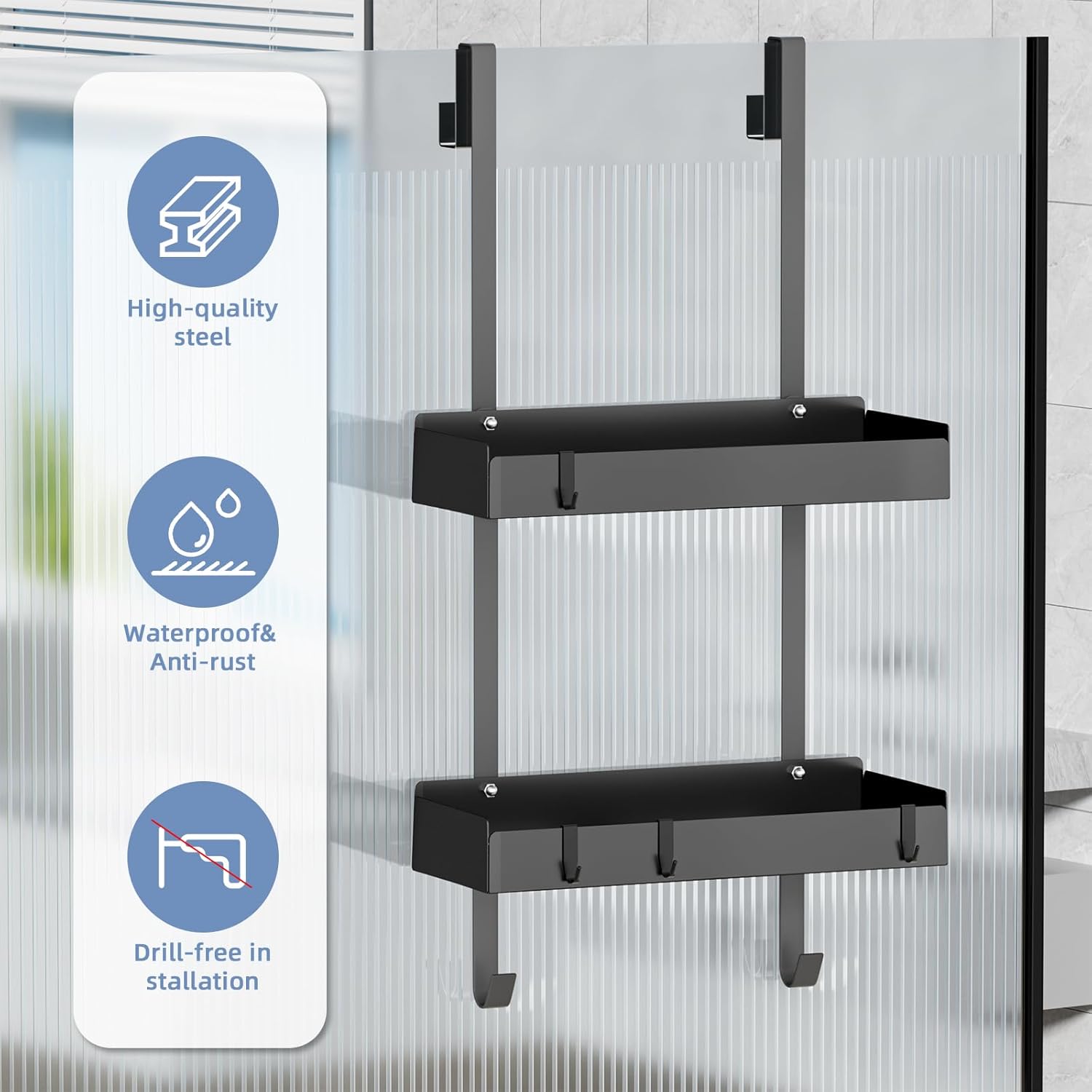 - 【 Duschkorb zum Hängen】: Sie müssen keine Löcher bohren und kleben, Sie müssen sich keine Sorgen machen, dass die Wand beschädigt wird oder das Produkt herunterfällt. Einfach zu montieren, keine Wartezeit, kann direkt auf dem Glas verwendet