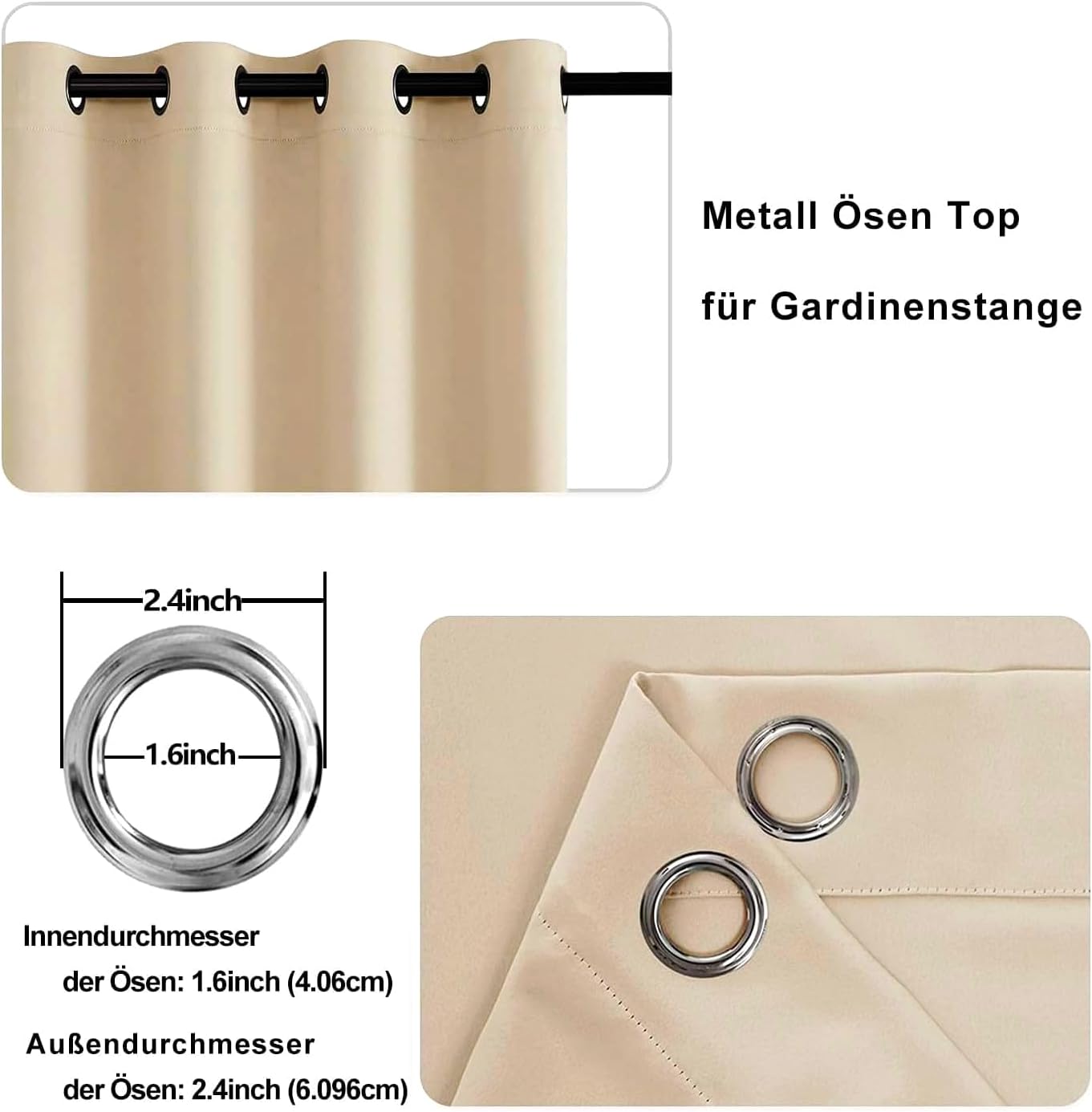 - GRÖssE UND MONTIERUNG: 2 Stück in einer Packung,ca.137x132cm in Höhe x Breite für jede Seite.Die Thermogardine verfügt über mehr silberfarbigen Metallösen (Aussendurchmesser ist 6cm, Innendurchmesser 4cm) auf der Oberseite für eine einfache