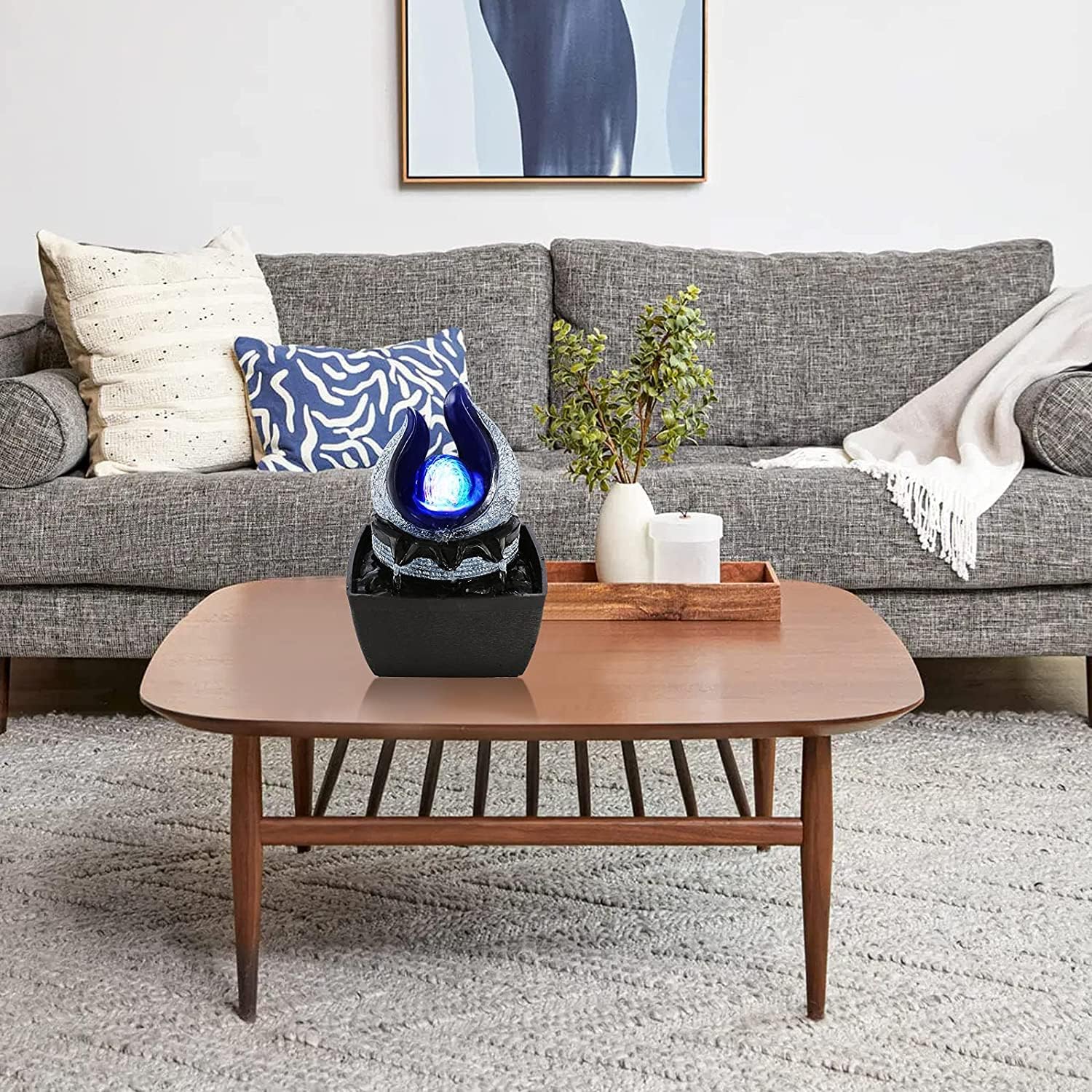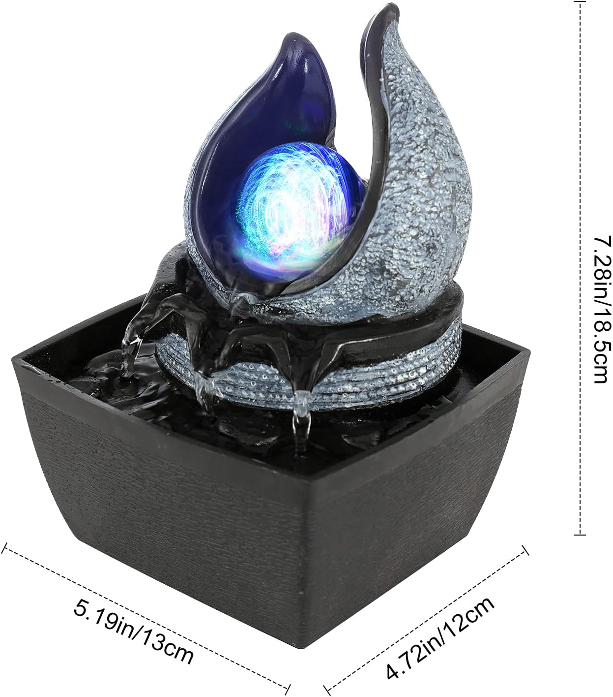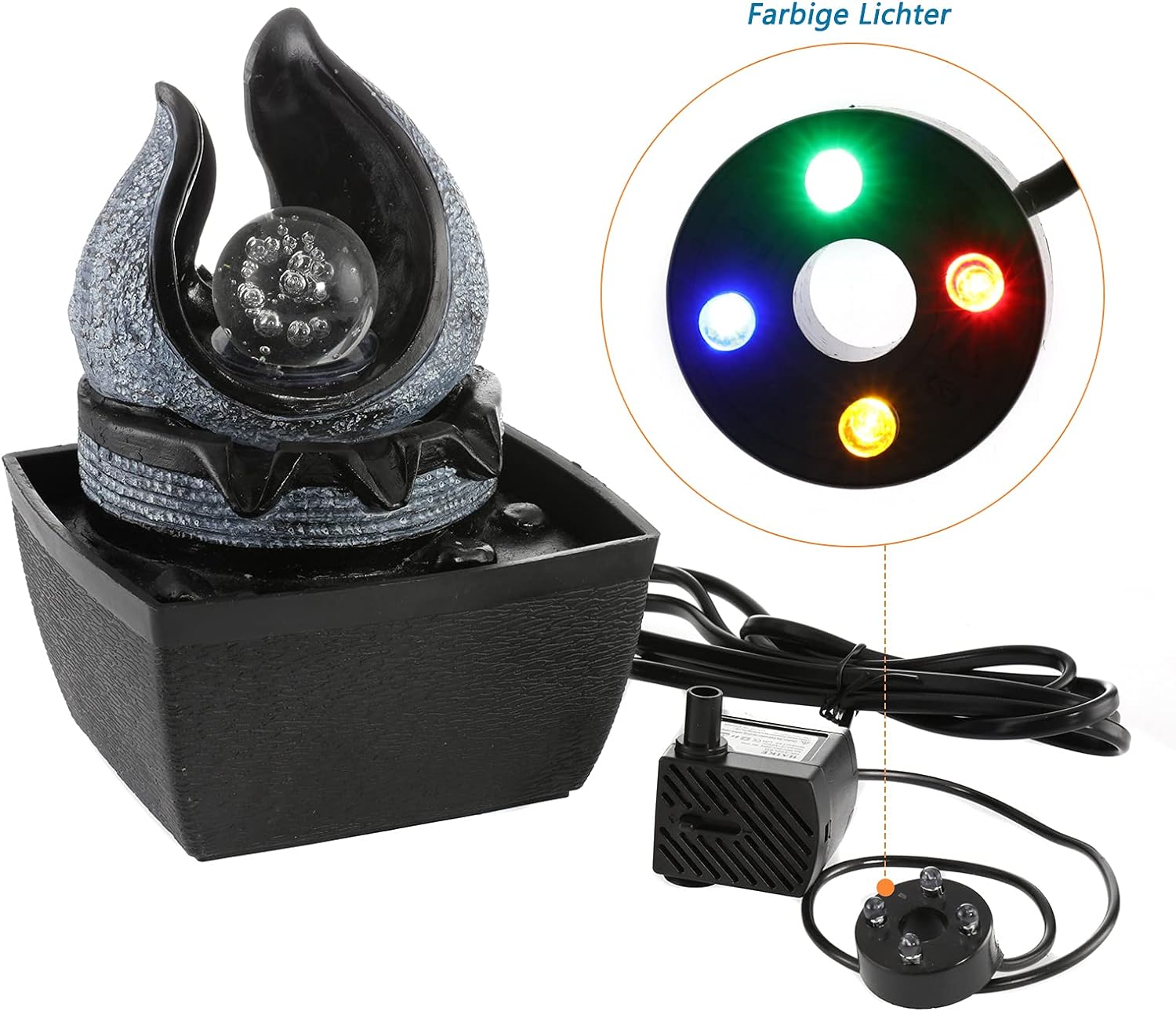 - [Zerstäubungsbefeuchtung] - Die fliessende Desktop-Dekoration mit LED-Lichtern, mit dem Wasserfluss erstrahlt der Indoor-Desktop-Brunnen mit bunten Lichtern, die Schönheit hinzufügen können. Das fliessende Wasser kann die Luftfeuchtigkeit im Raum