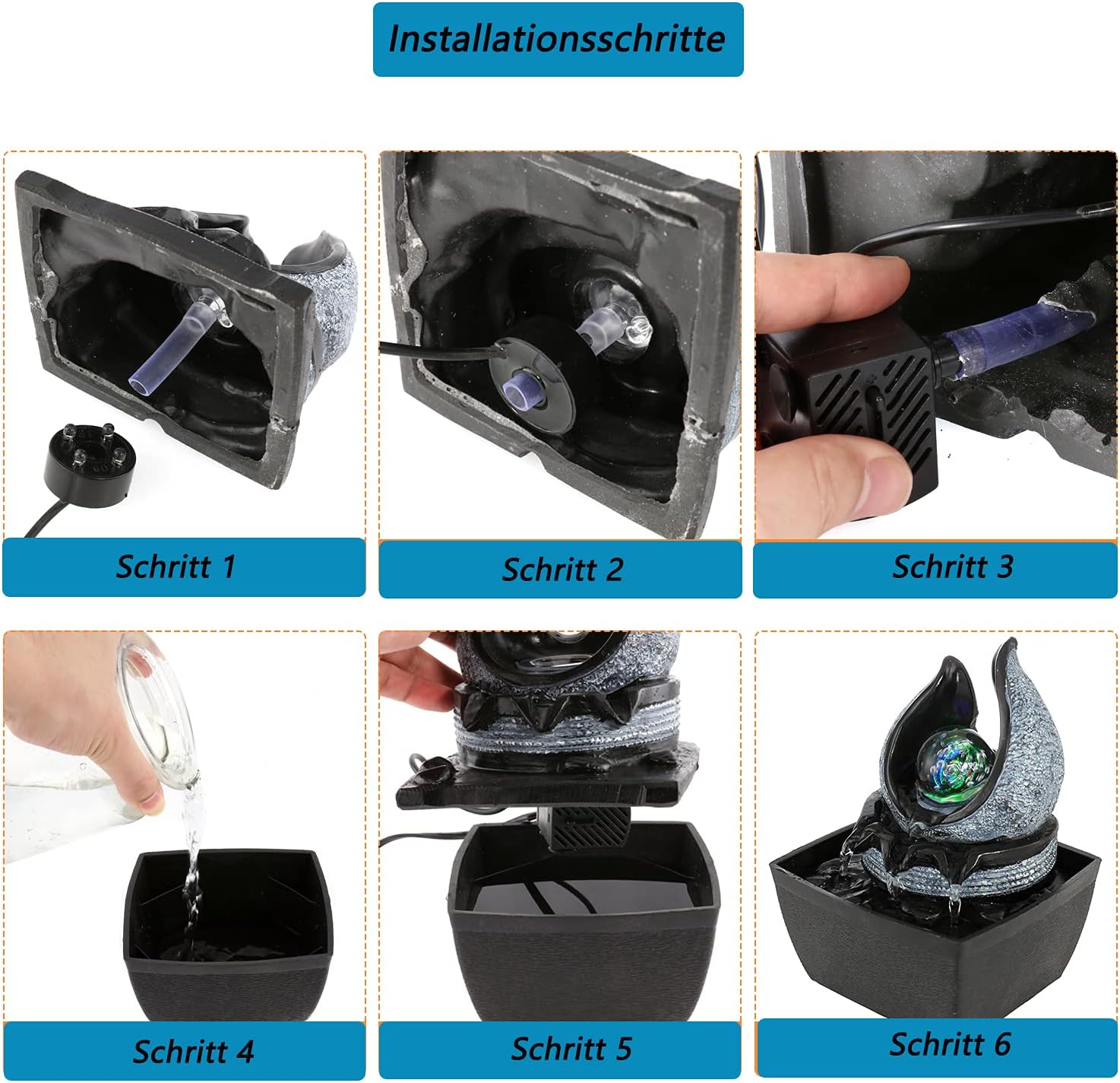 - [Dekorative Wasserfontänen Indoor] - Wasserfallbrunnen mit leiser Tauchpumpe, um das Wasser zu zirkulieren und sanftes, beruhigendes Wassergeräusch zum Entspannen zu erzeugen. Der Zimmerbrunnen mit Lichtern eignet sich für jedes Büro,