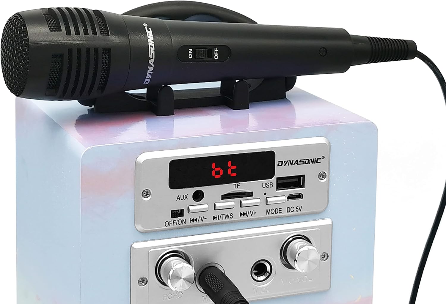 - Bluetooth und tragbarer. Kompatibel mit iOS und Android, verwenden Sie es als MP3-Player oder FM-Radio. Verbinden Sie den Lautsprecher mit Bluetooth mit mikrofon karaoke mit einem anderen Gerät und spielen Sie Musik ab. Singen Sie Ihre Lieblingslieder dank des mit dem Produkt gelieferten Mikrofons ohne Unterbrechung.