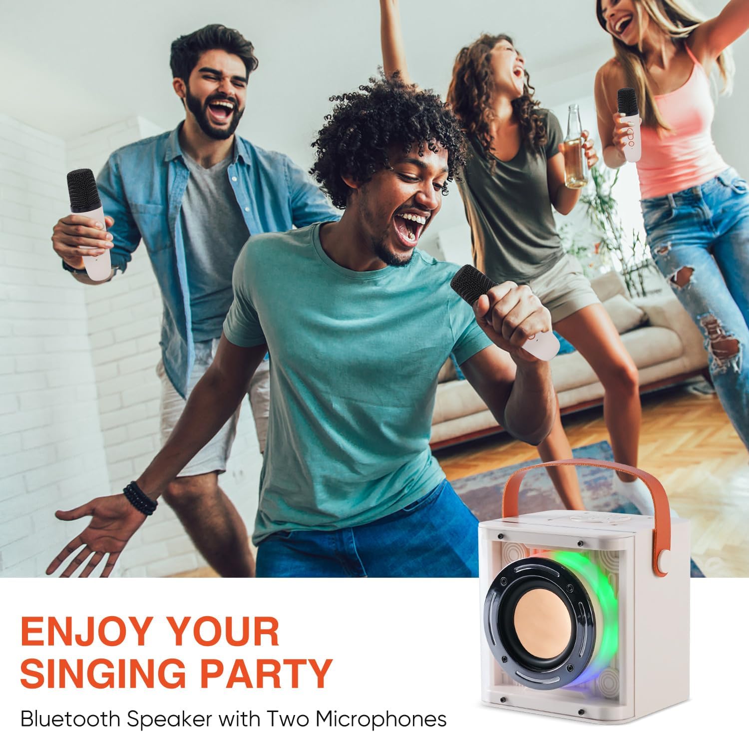 DYNASONIC B52 Karaoke mit Zwei Mikrofonen, Bluetooth-Karaoke-Lautsprecher für Kinder, elektronisches