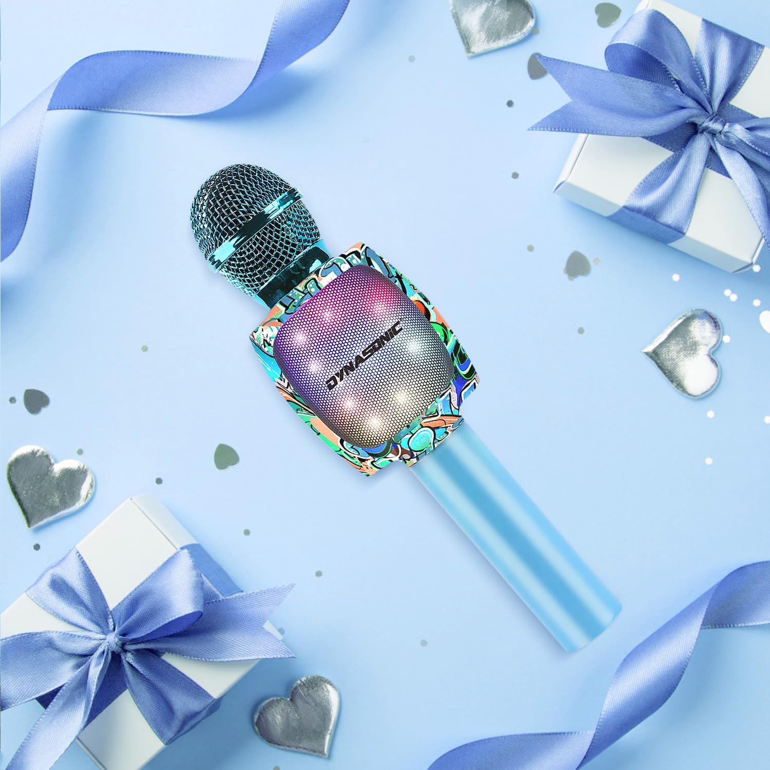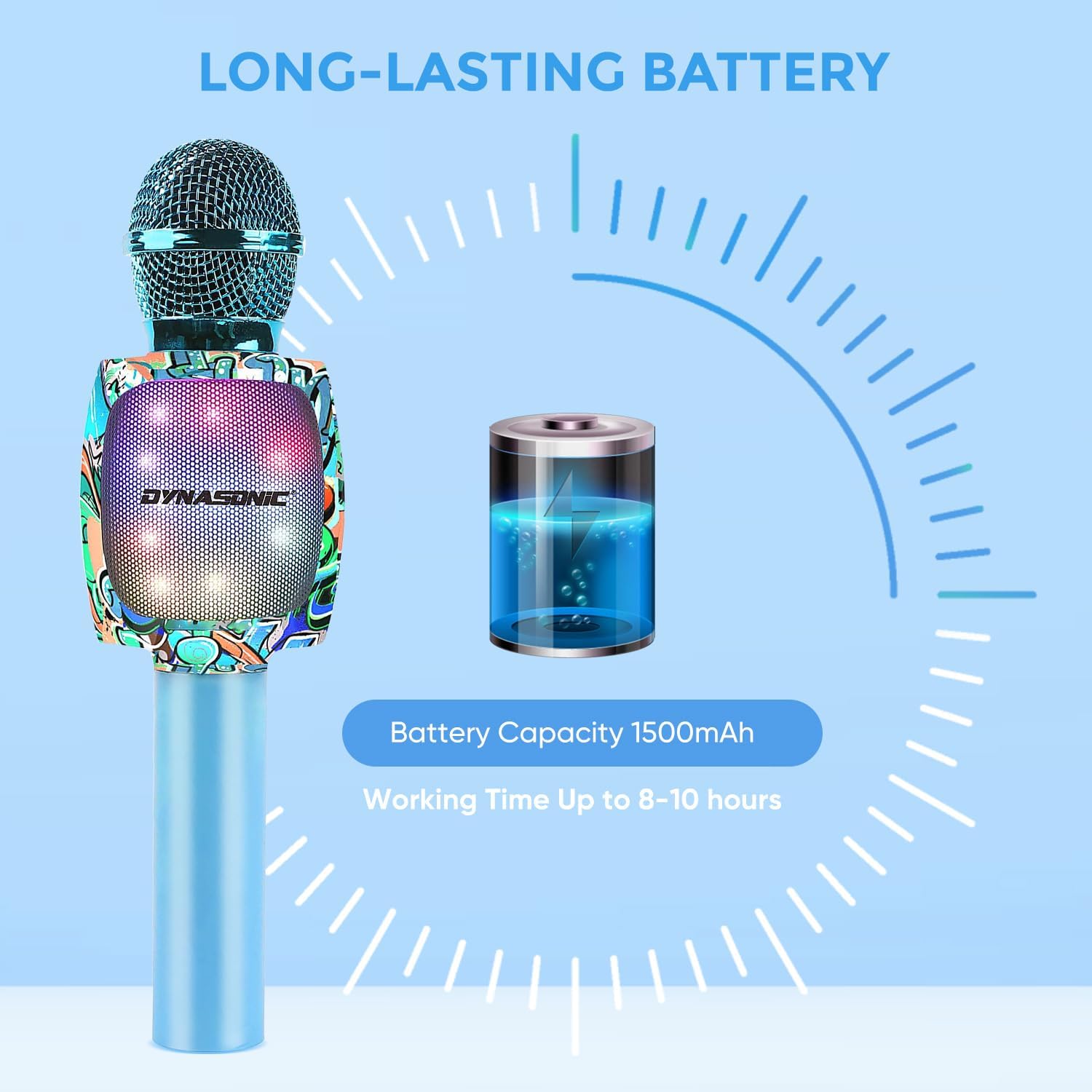 - Originelles Design. Es ist das erste Mal, dass Dynasonic die fortschrittliche Digitaldruck-Technologie für das Karaoke-Mikrofon verwendet. Es hat ein jugendliches und farbenfrohes Design, das auf dem Markt einzigartig ist. Eine tolle Wahl für