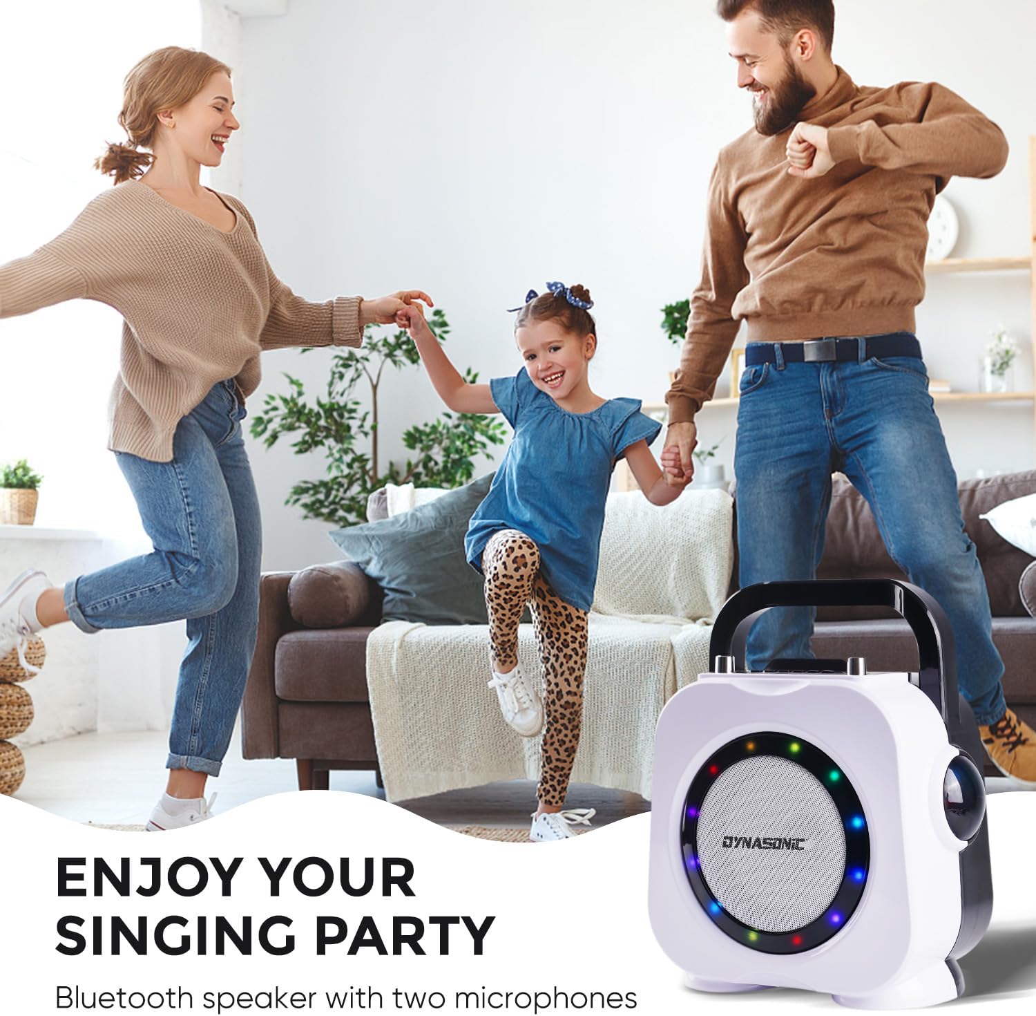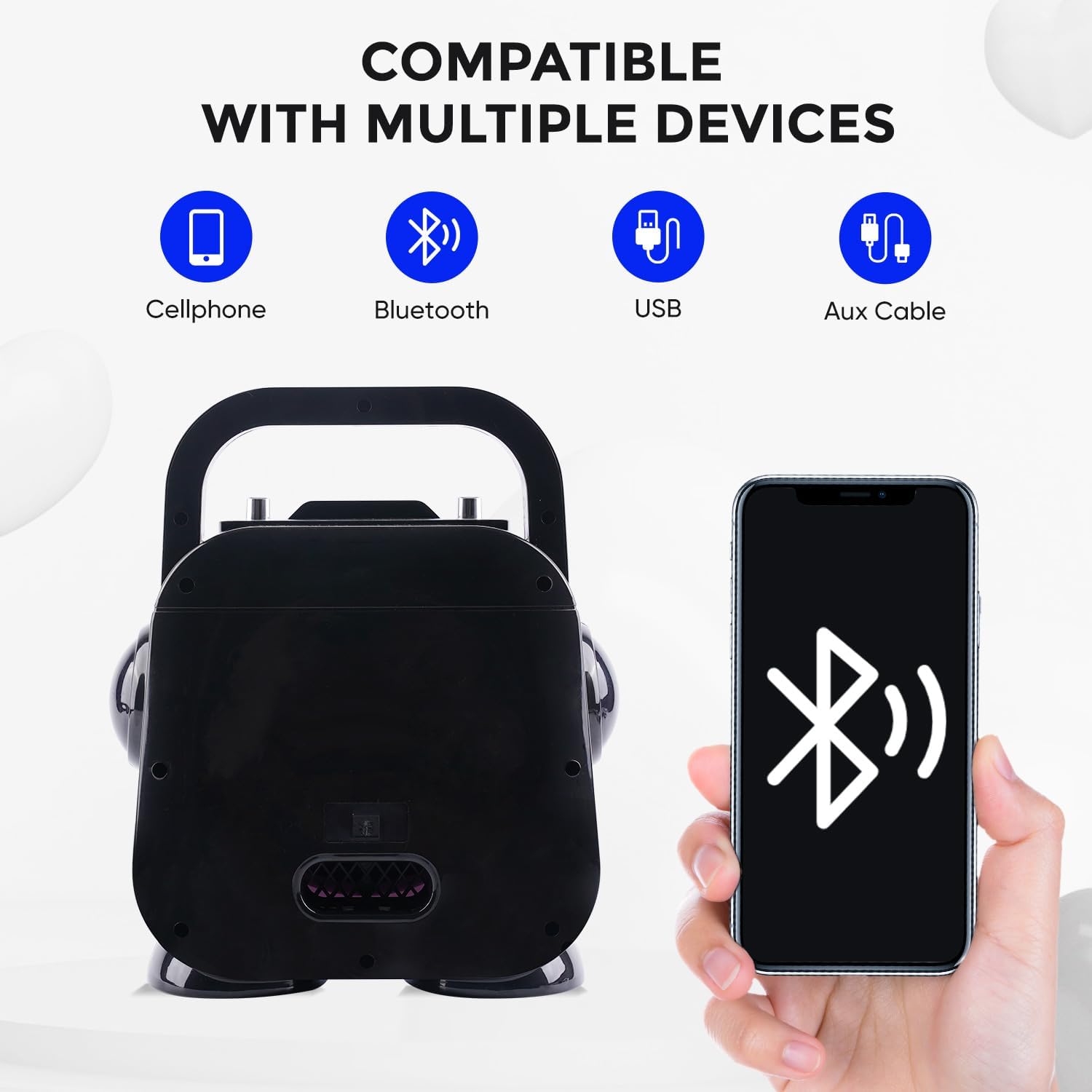 - BLUETOOTH KARAOKE-LAUTSPRECHER MIT MIKROFON. Ein Produkt mit kraftvollem Klang und leichter Grösse. Enthält zwei Mikrofone, um Ihre Lieblingssongs zu singen AUX IN-Eingang für 3,5-mm-Miniklinke, Kabel im Lieferumfang enthalten: Doppelter