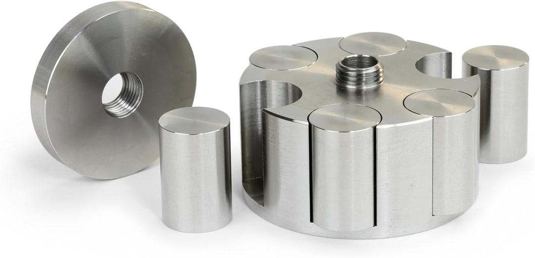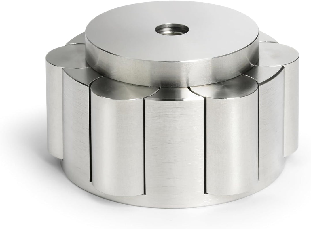 - Hochwertige Verarbeitung: Das edel designte Gewicht aus Edelstahl in Revolver-Magazin-Optik ermöglicht das Entnehmen der einzelnen Zylinder.