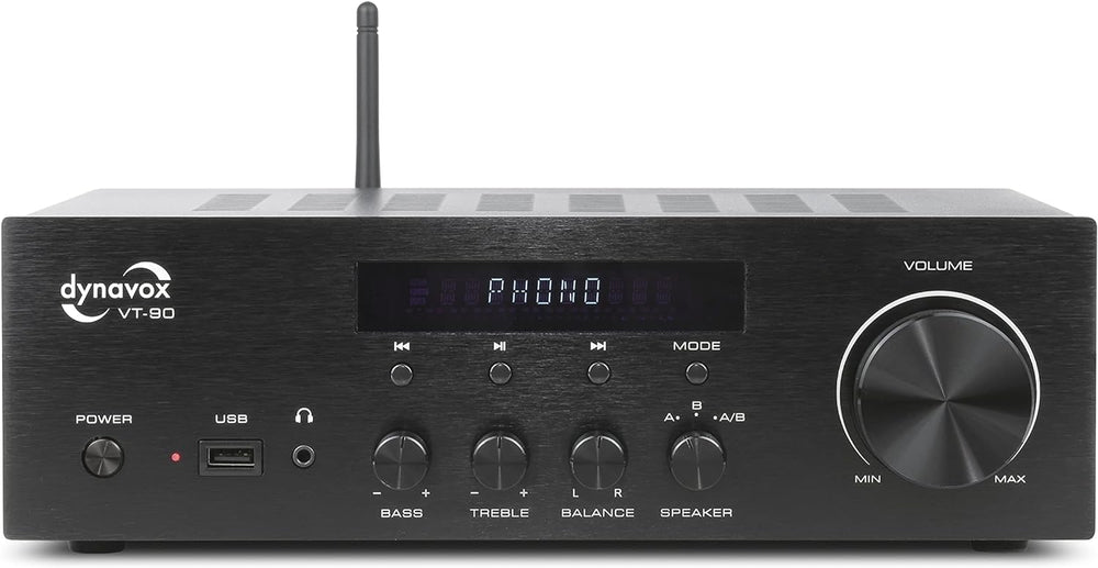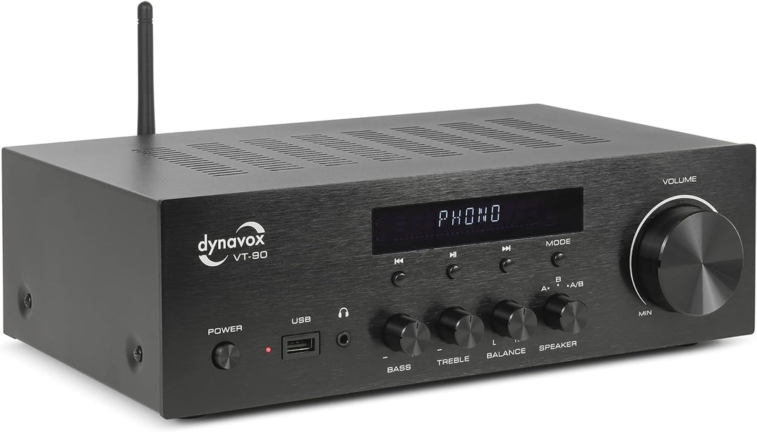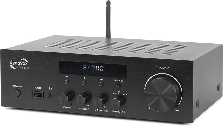 - Phono-Eingang: Der Hifi-Verstärker verfügt über einen eingebauten Phono-Eingang - so lässt sich ohne externe Lösungen ein Plattenspieler einfach an die Anlage anschliessen.