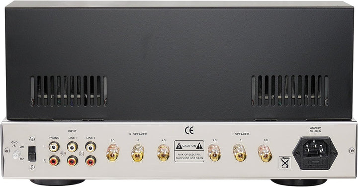 - Ein reiner Phono-Eingang für den Plattenspieleranschluss (umschaltbar MM/MC) 3 Eingänge und Lautsprecheranschlüsse für 4 und 8 Ohm,