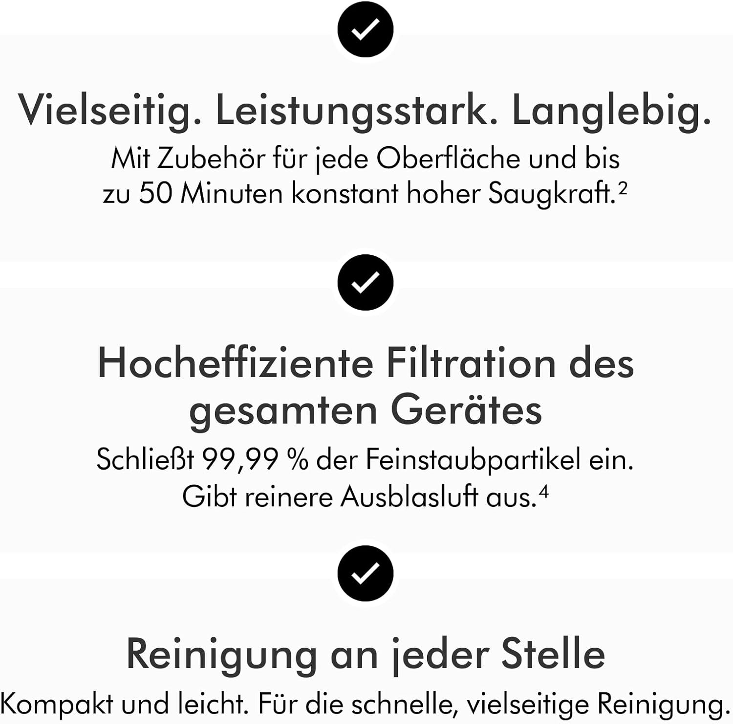 - Leistungsstark. Vielseitig. Langlebig. Bis zu 50 Minuten konstant hohe Saugkraft² mit dem Dyson Lithium-Ionen-Akku mit hoher Energiedichte.