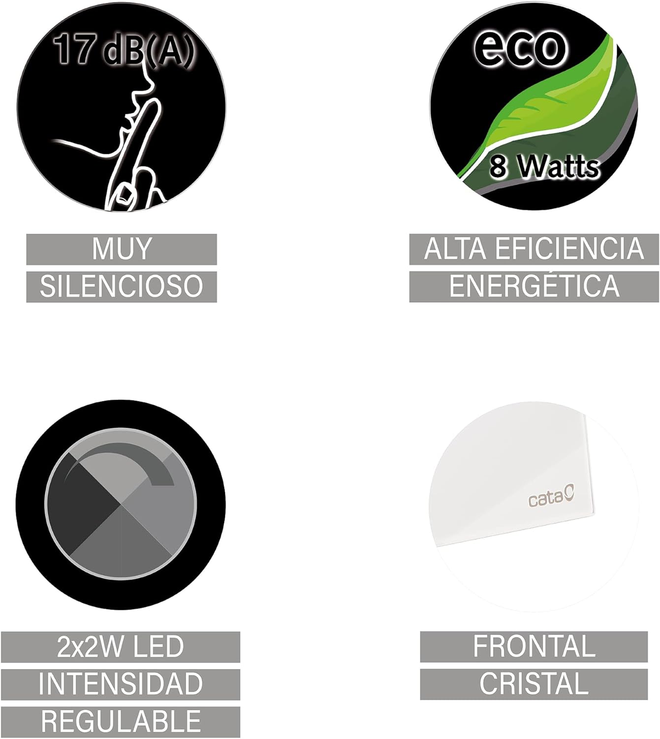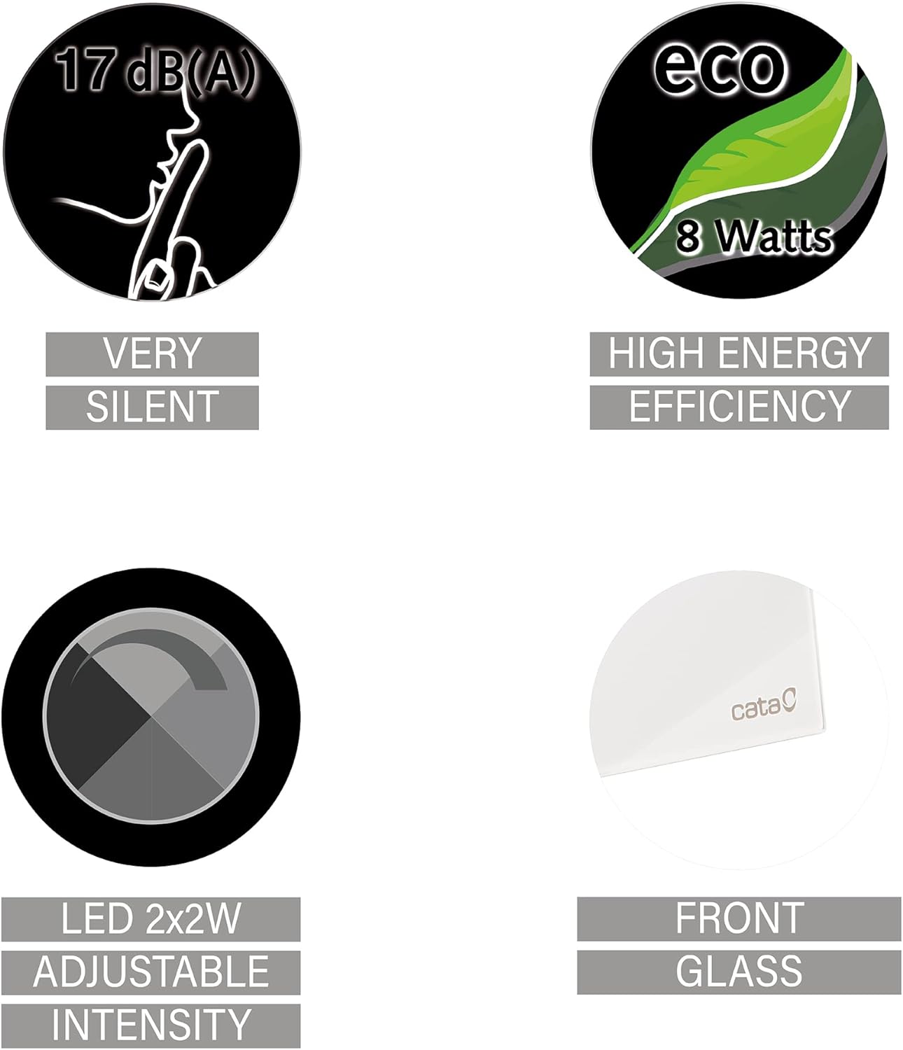 - ERGONOMISCHES DESIGN: Es handelt sich um einen Feuchtigkeitsabzug mit modernem Design, der die Turbine mit einer weissen Glasfront verdeckt. Ein nützliches Gerät mit elektronischem Timer für 3 und 15 Minuten und einstellbarem Feuchtigkeitsmesser.