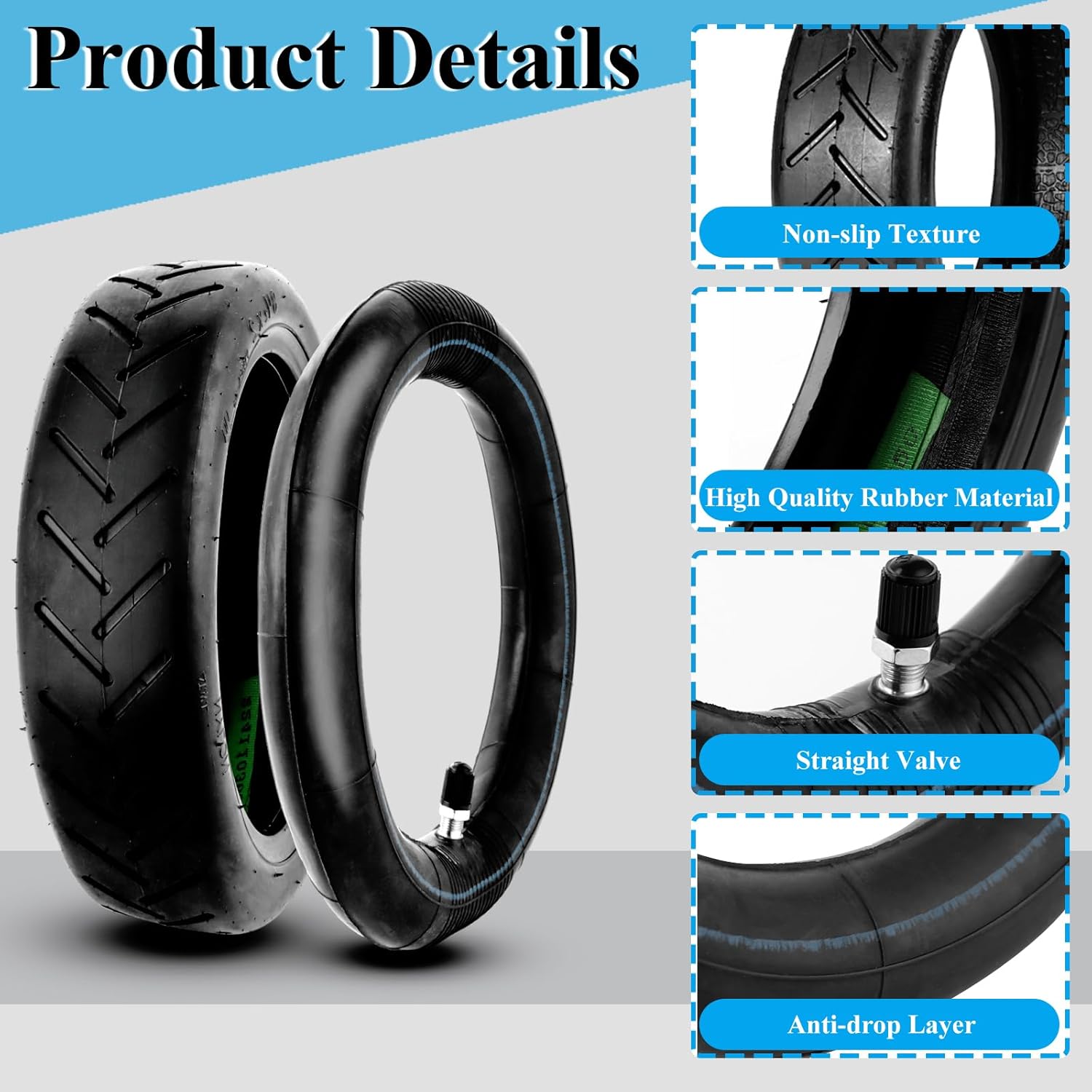 - đăPAKET ENTHALTENăDie Verpackung enthĂ€lt 2 Reifen und 2 Schlauch, ist sehr strapazierfĂ€hig und eignet sich perfekt zum Ersetzen alter oder abgenutzter 8,5-Zoll-Reifen fĂŒr Elektroroller.