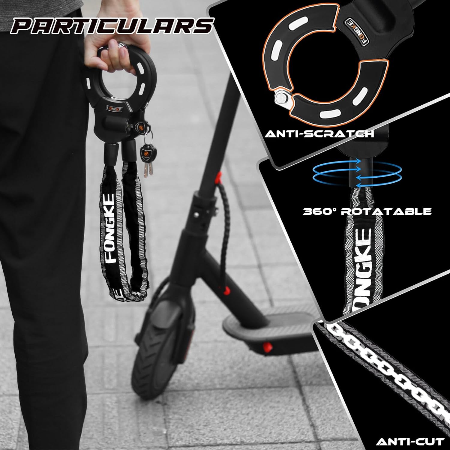 • Anti-Kratz-Design: Es gibt weiches Silikon um die Manschette des Schlosses, die effektiv Korrosion zu verhindern, verhindern, dass die Handschellen von Rost und Kratzen, verhindern, dass Kratzer der Elektroroller. Sie müssen sich keine Sorgen machen,