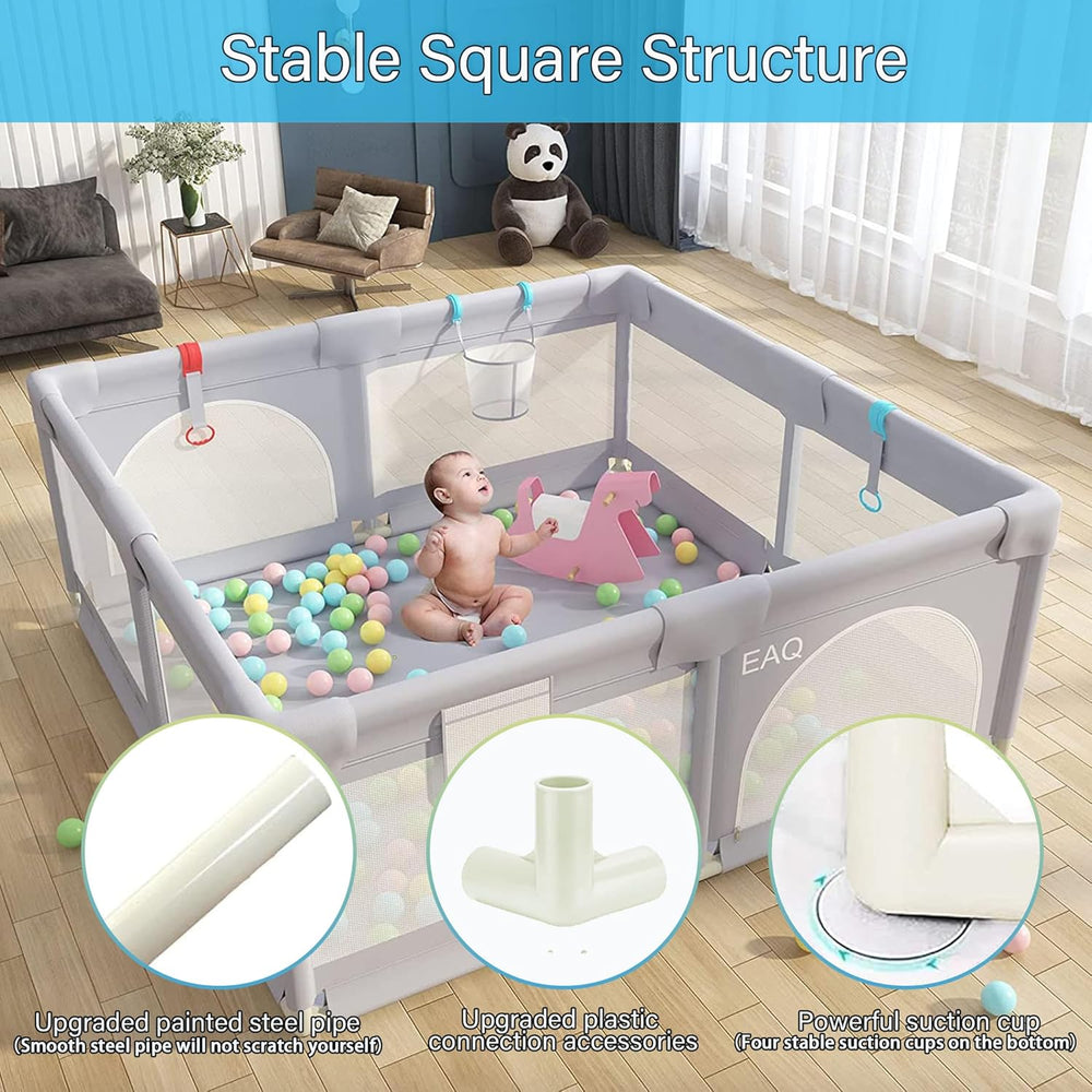 - 💖Spielspass zu jeder Zeit: Unser Baby Laufstall von EAQ verwandelt jeden Raum in eine sichere Spielzone! Mütter können sich beruhigt auf ihre Aufgaben konzentrieren. (Hinweis: Bälle sind nicht im Lieferumfang enthalten.)