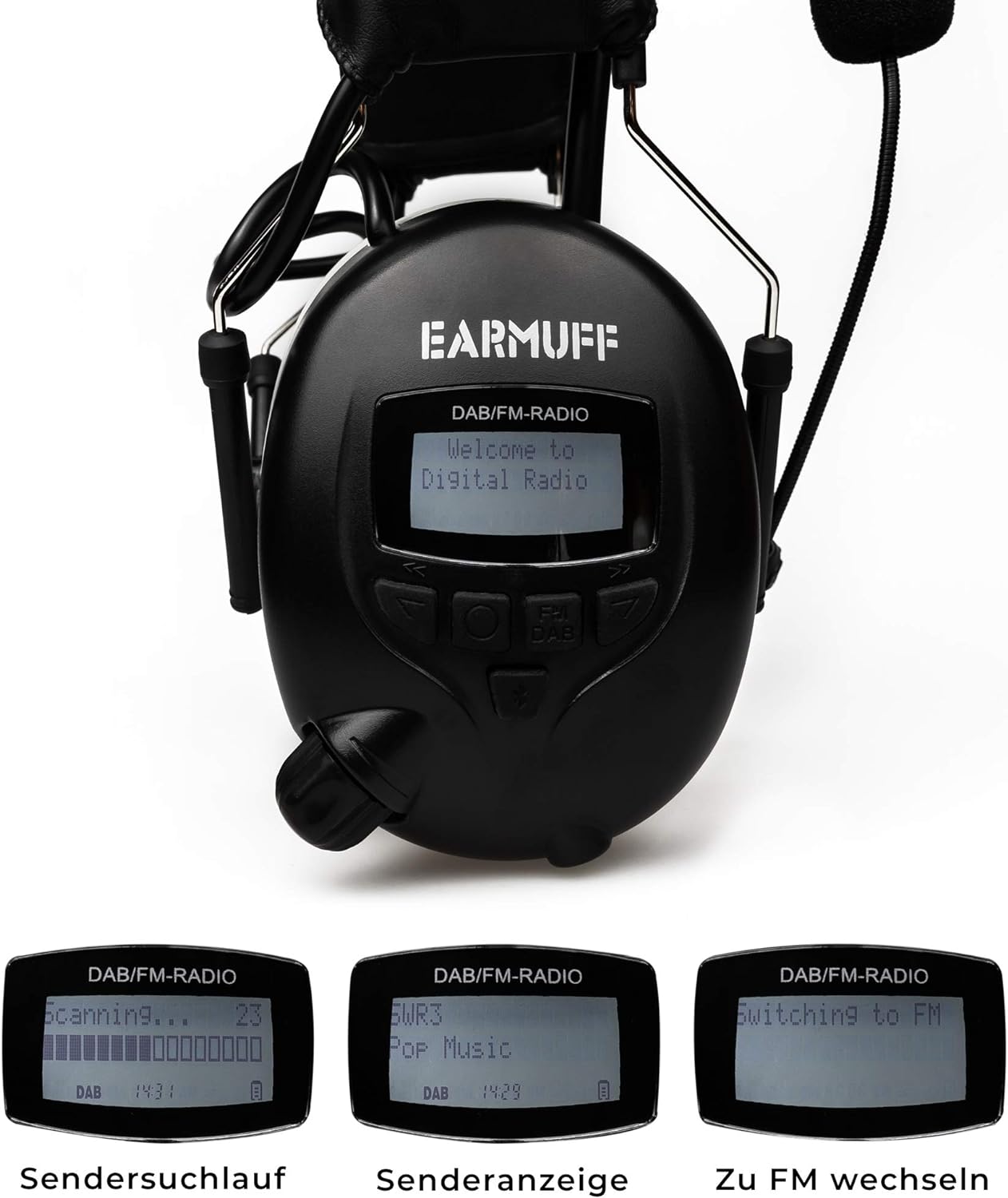 EARMUFF Gehörschutz mit DAB+ & FM 31dB Dämmung | Lieblingsradiosender & Musik über Digital Radio & F