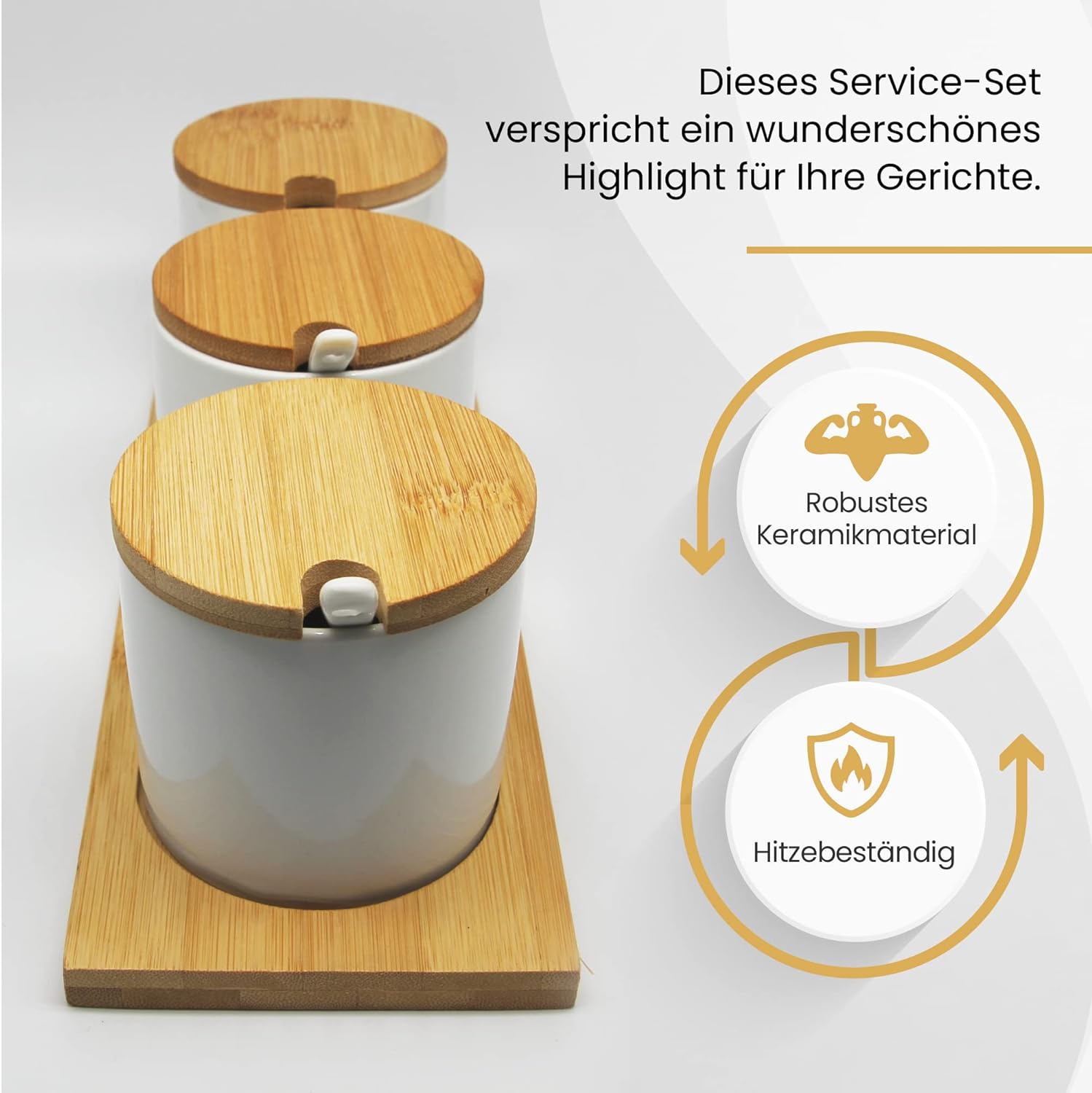 - Das 10-teilige Servierset umfasst drei Snackschalen aus Keramik auf einer praktischen Bambusplatte und drei Löffel. Das Set ist ideal für jede Mahlzeit, ob Frühstück, Mittag oder Snack zwischendurch.