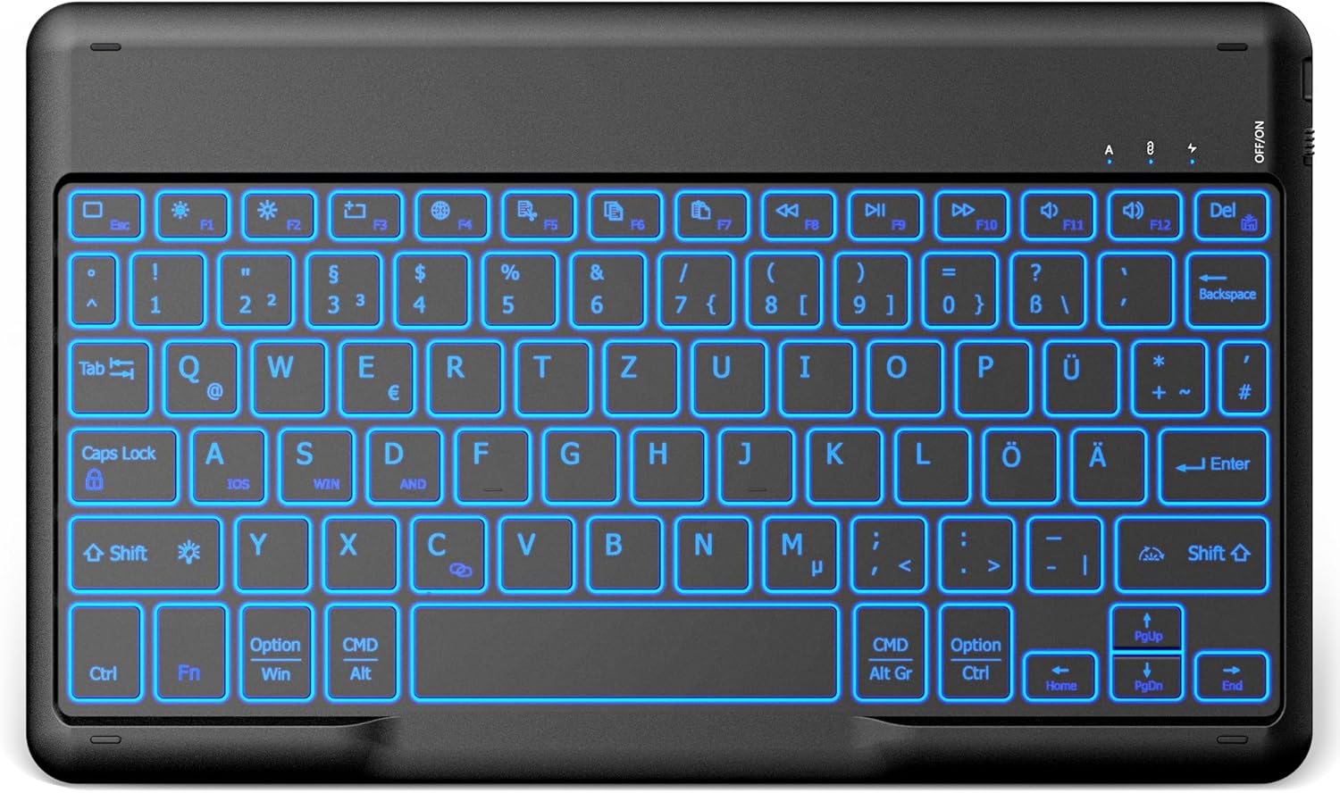 - Bluetooth Tastatur - Kabellose Tastatur mit einer zuverlässigen Bluetooth Übertragung bis zu 10 m Entfernung zum Gerät.