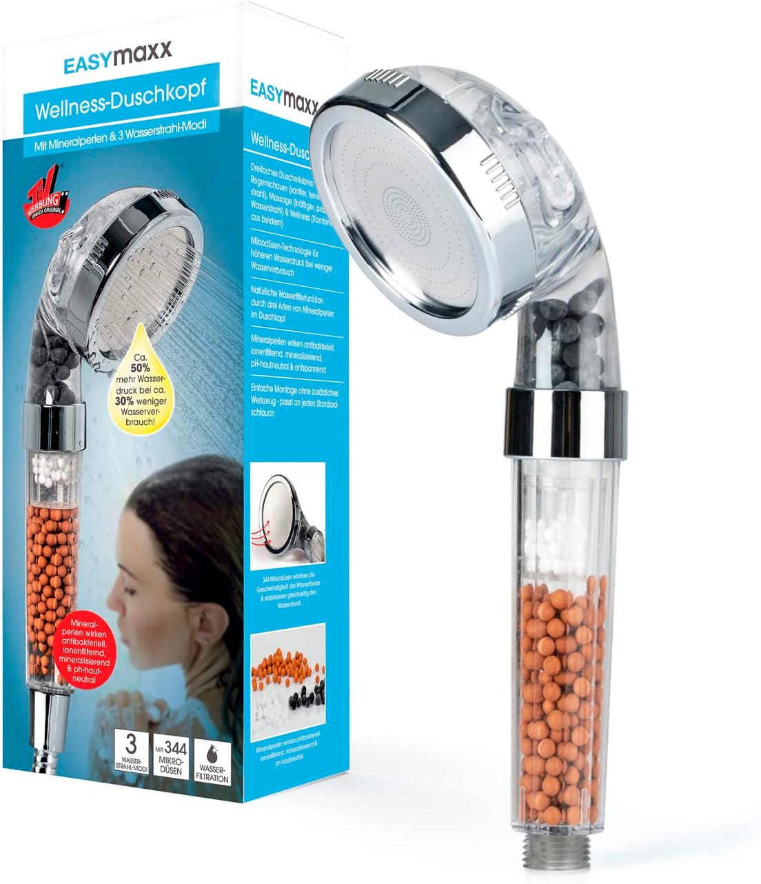 - WASSER SPAREND - Durch den hohen Wasserdruck und den Mineralperlen in dem EASYmaxx Duschkopf sinkt der Wasserverbrauch im Vergleich zu herkömmlichen Brausen um 30%
