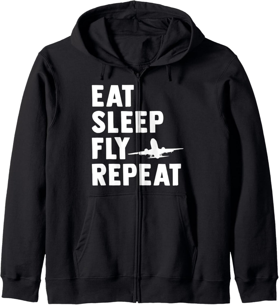 PRODUKTBESCHREIBUNGEN Eat Sleep Fly Repeat. Funny perfect gift for pilots of the aviation who fly planes. Great gift for pilots who love to fly with helicopter, plane and airplanes. This is the perfect gift for airplane pilot, flight attendant, aviator, plane lovers or anyone who love flying with an airplane, helicopter or jet.