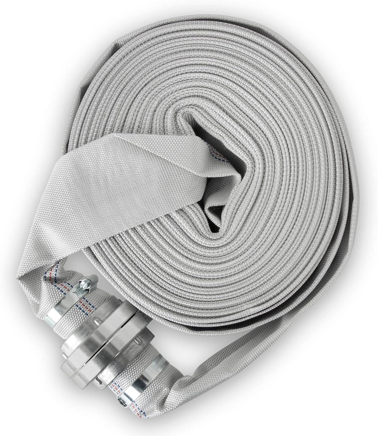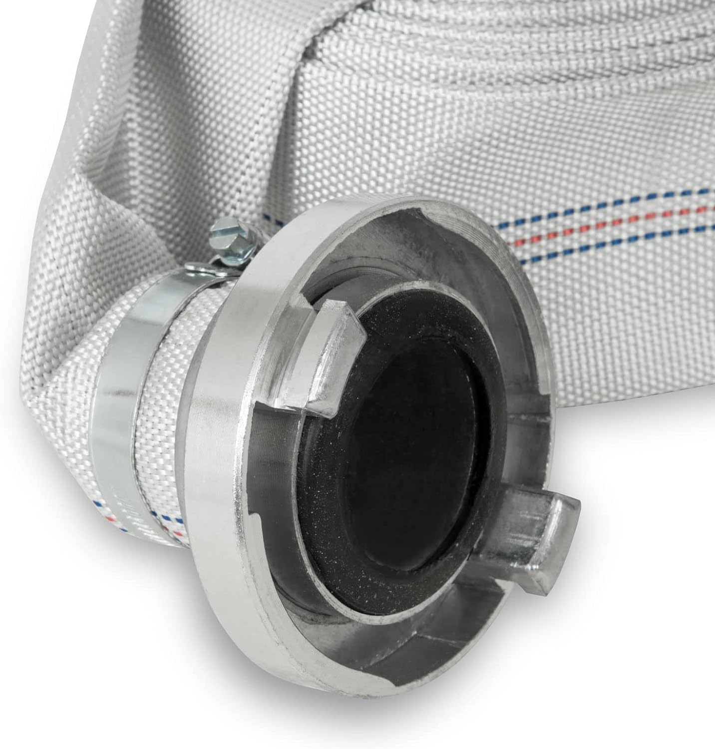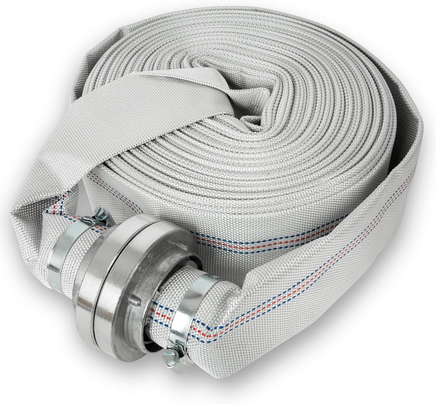 - Mit einem Arbeitsdruck von bis zu 3 bar ist der Feuerwehrschlauch sehr gut geeignet für alle gängigen Arbeitsanwendungen, der Flachschlauch ist wetterfest und ausgelegt für Einsätze in Temperaturbereichen von -5°C bis +65°C