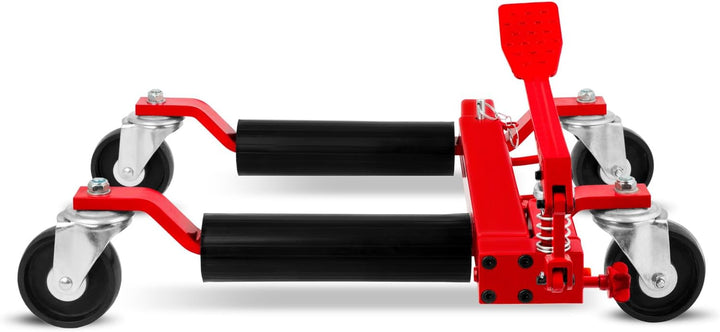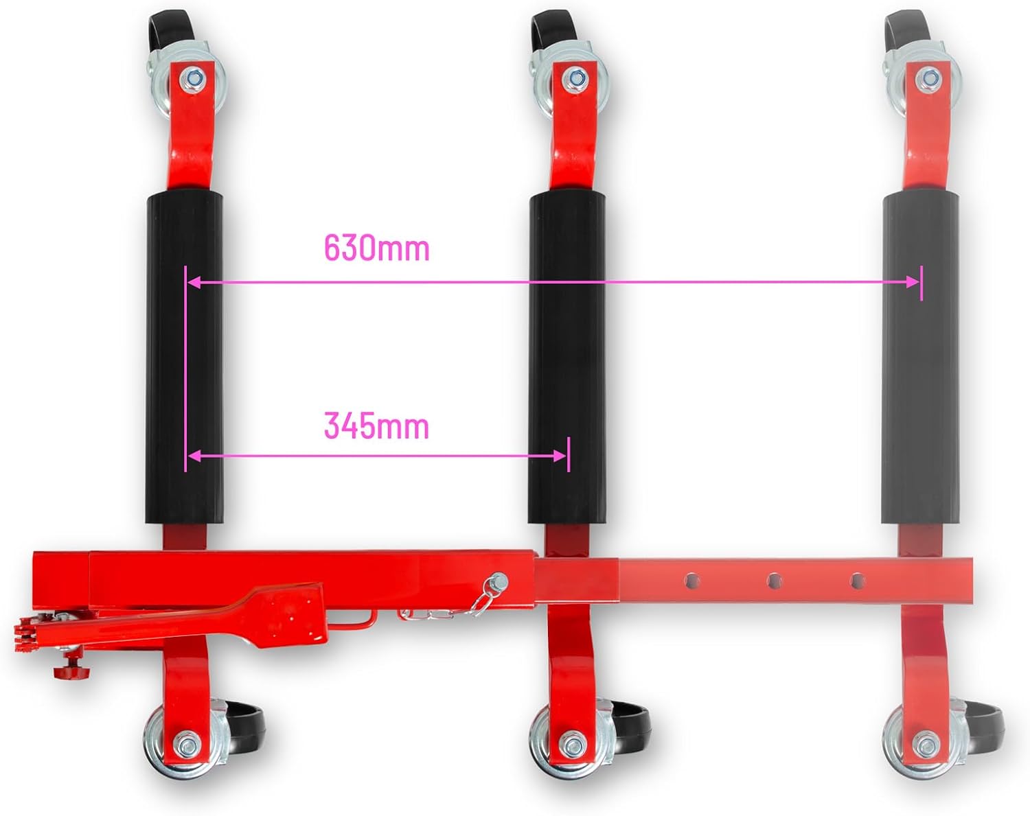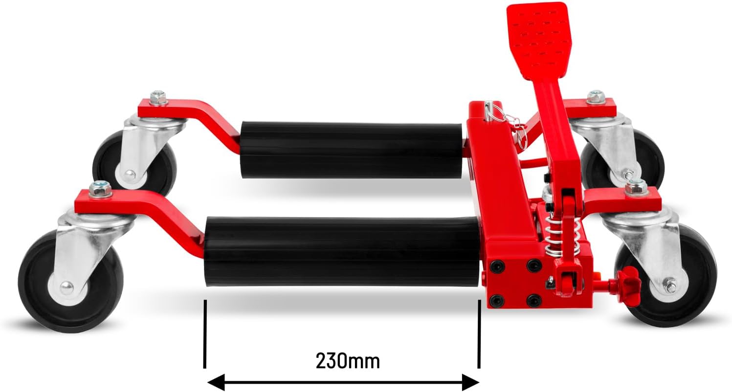 - EINFACHE BEDIENUNG / HOHE SICHERHEIT: Die Parallelstangen der Rangierhilfen werden per Fusspedal hydraulisch zueinander gepumpt. Wenn die Reifen in der Luft sind, werden die Parallelstangen durch einen Stahlbolzen gesichert.