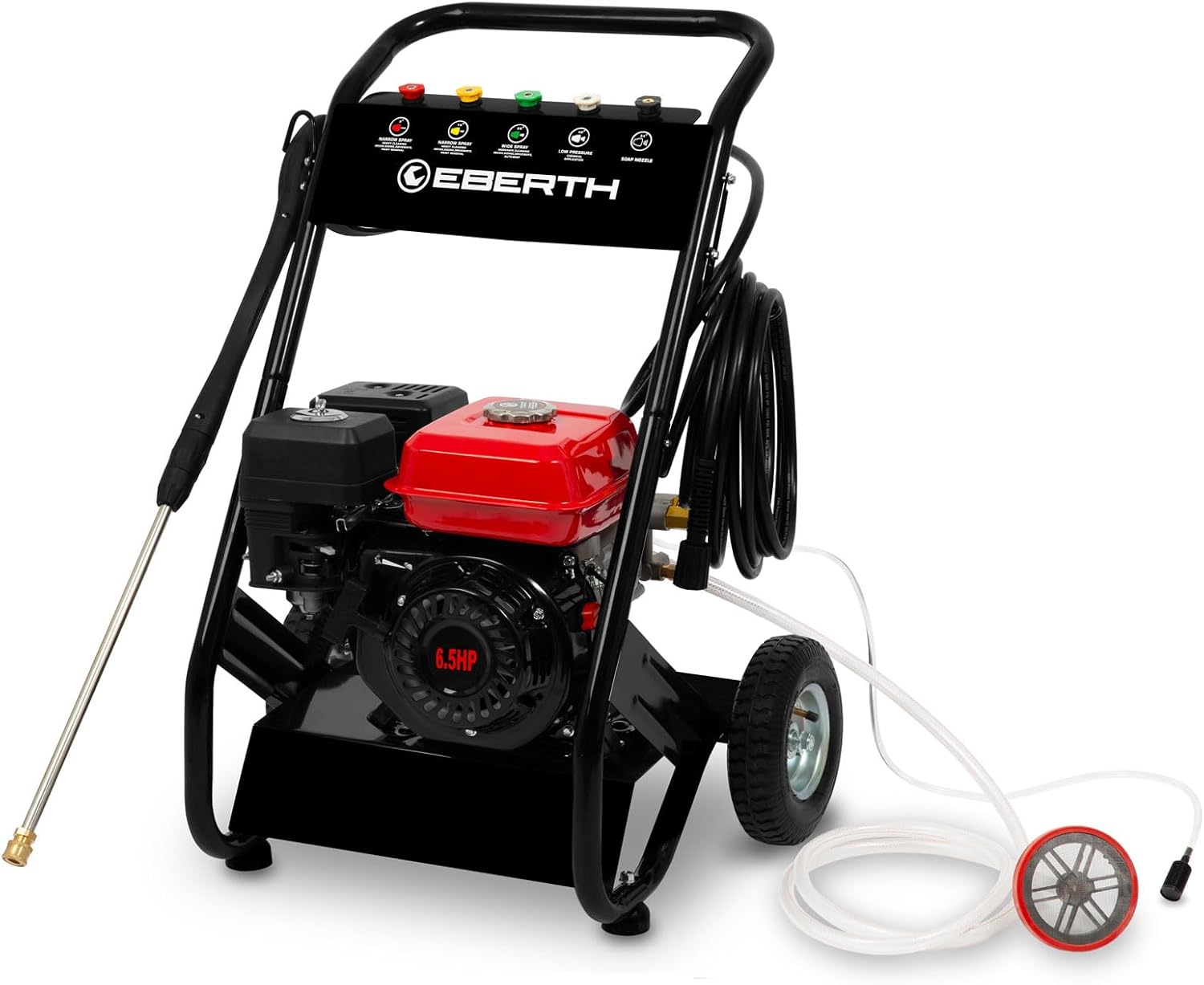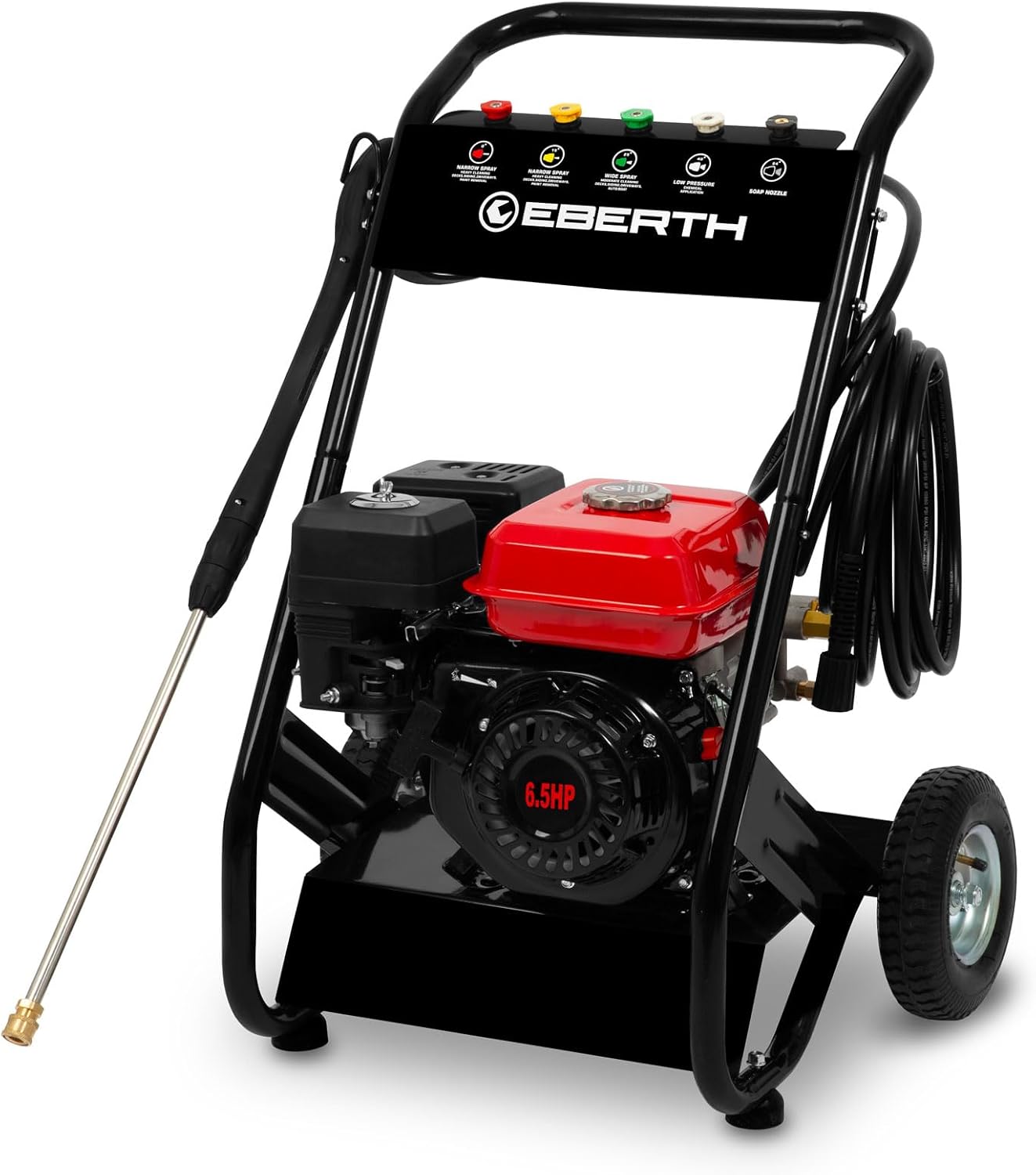 - QUALITÄT: Haus, Garten, Terrasse, Gehweg, Kraftfahrzeuge, schwere Geräte - Die Anwendungsbereiche des 6,5 PS Benzin Hochdruckreiniger von EBERTH sind vielseitig. Mit 210 bar Arbeitsdruck reinigen Sie auch stark verschmutzte Oberflächen spielendleicht