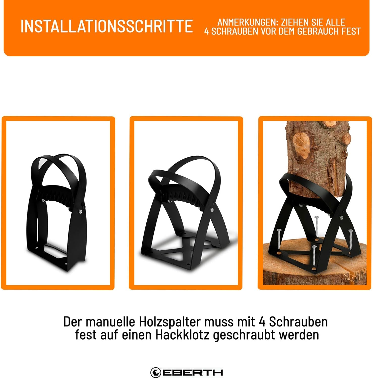 - Mit dem EBERTH Spaltkeil LS5-MH spalten Sie Holz mühelos und ohne viel Kraftaufwand: Aufgrund der scharfen Spezialklinge mit Keilform bricht das Holz beim Spalten spielendleicht auseinander. Der manuelle Holzspalter muss mit 4 Schrauben sicher auf einen