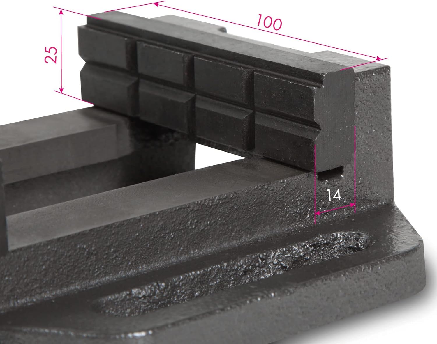- Alle Abmessungen sind bitte den Produktfotos zu entnehmen. Grundsätzlich erwerben Sie einen Maschinenschraubstock, der eine einfache Bedienung ermöglicht und zudem eine lange Haltbarkeit bietet. Der massive Schraubstock aus Grauguss und Stahl ist