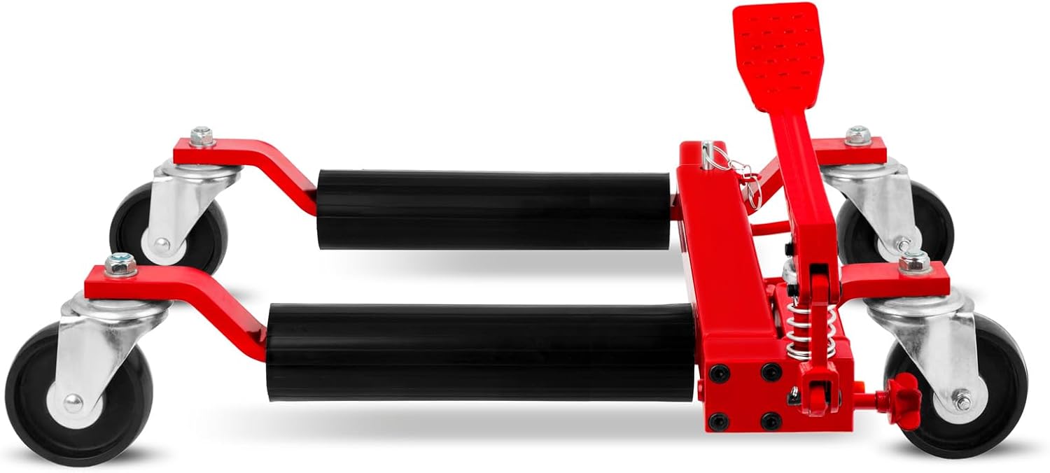 - EINFACHE BEDIENUNG / HOHE SICHERHEIT: Die Parallelstangen der Rangierhilfe werden per Fusspedal hydraulisch zueinander gepumpt. Wenn der Reifen in der Luft ist, werden die Parallelstangen durch einen Stahlbolzen gesichert.