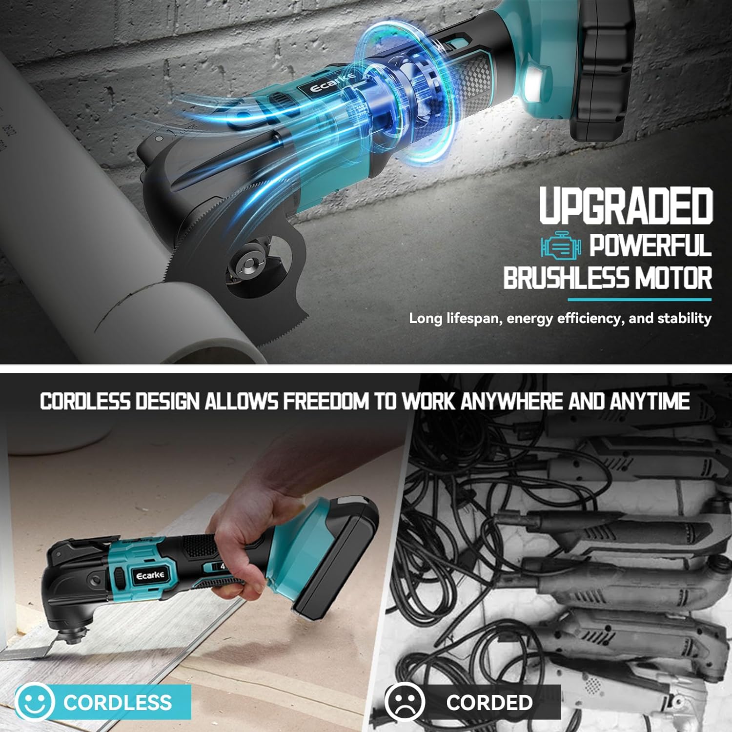 - ✔【Kompatibilität】Unser Akku-Multitool ist perfekt auf die Verwendung mit Makita 18V Lithium-Ionen-Akkus abgestimmt (Hinweis: Akkus sind nicht im Lieferumfang enthalten). Wenn Sie bereits im Besitz eines solchen Akkus sind, können Sie diesen