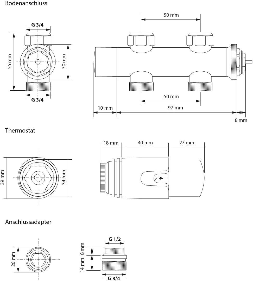 - HOCHWERTIGE ANSCHLUSSGARNITUR FÜR HEIZKÖRPER MIT ZWEIROHR SYSTEM MITTELANSCHLUSS IN CHROM - Qualitativ hochwertige und innovative Produkte mit schönem Design für Bäder, Saunen, Küchen und Wohnräume.