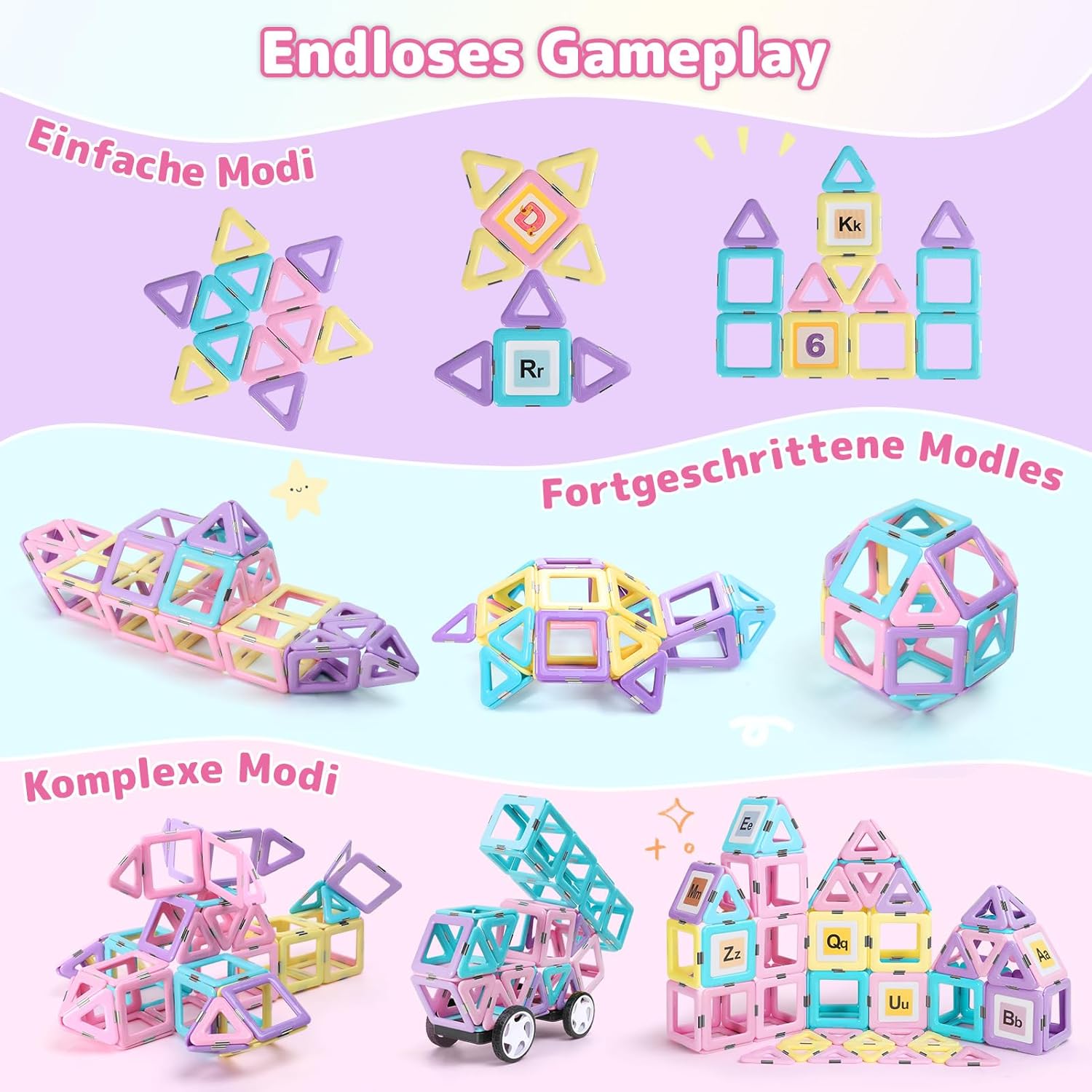 - ENTFESSELN SIE IHRE KREATIVITÄT: Mit den 120 bunten magnetischen Blöcken und den 2 Sockeln mit Rädern können Kinder alles bauen, was ihnen in den Sinn kommt und kreativ spielen. Mit einer einfachen Verbindung können diese magnetischen Lernbausteine