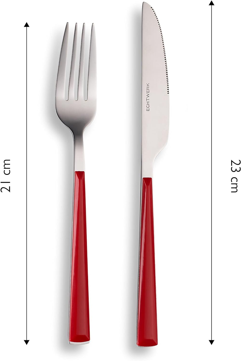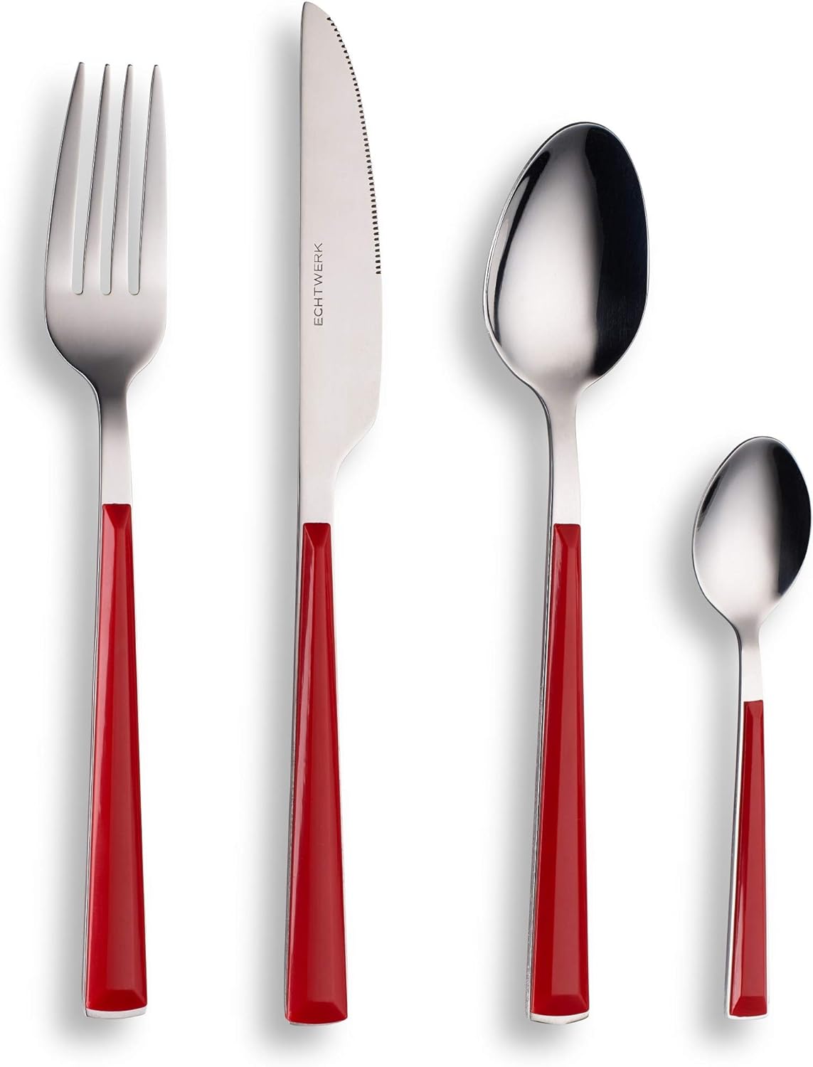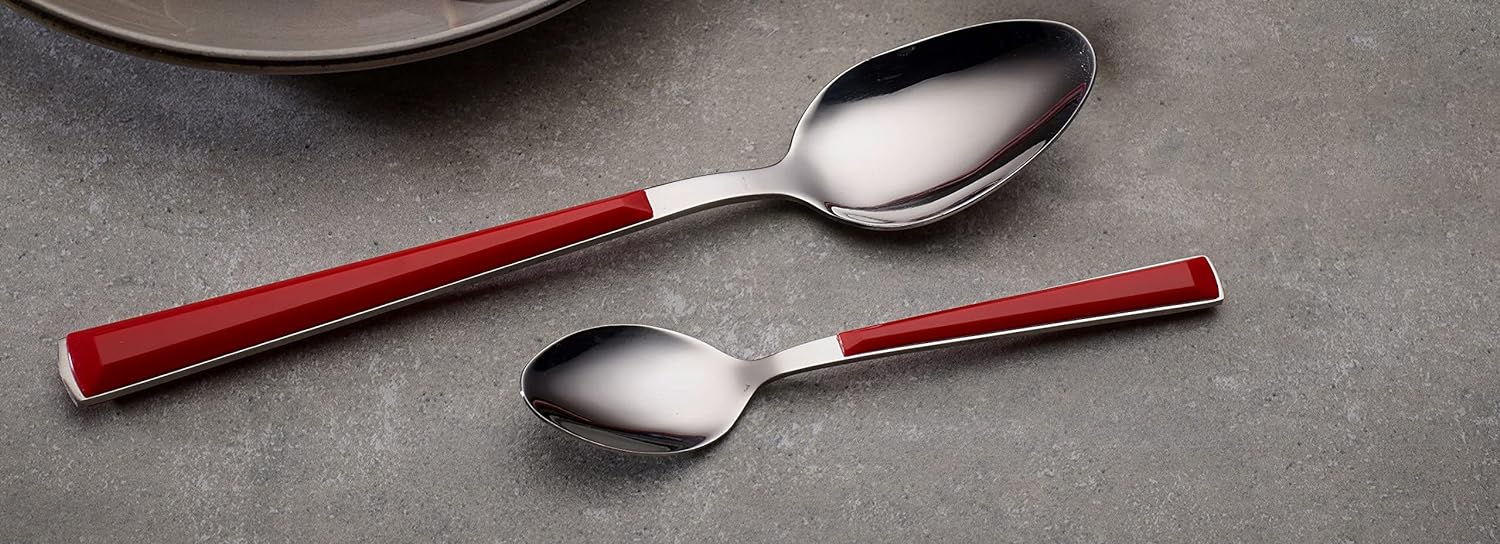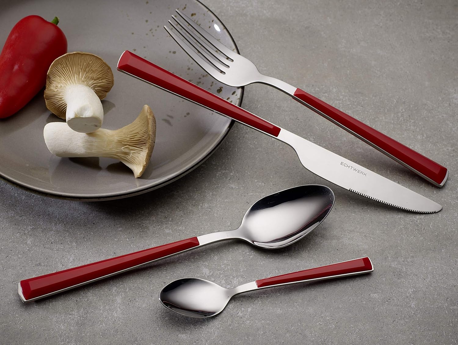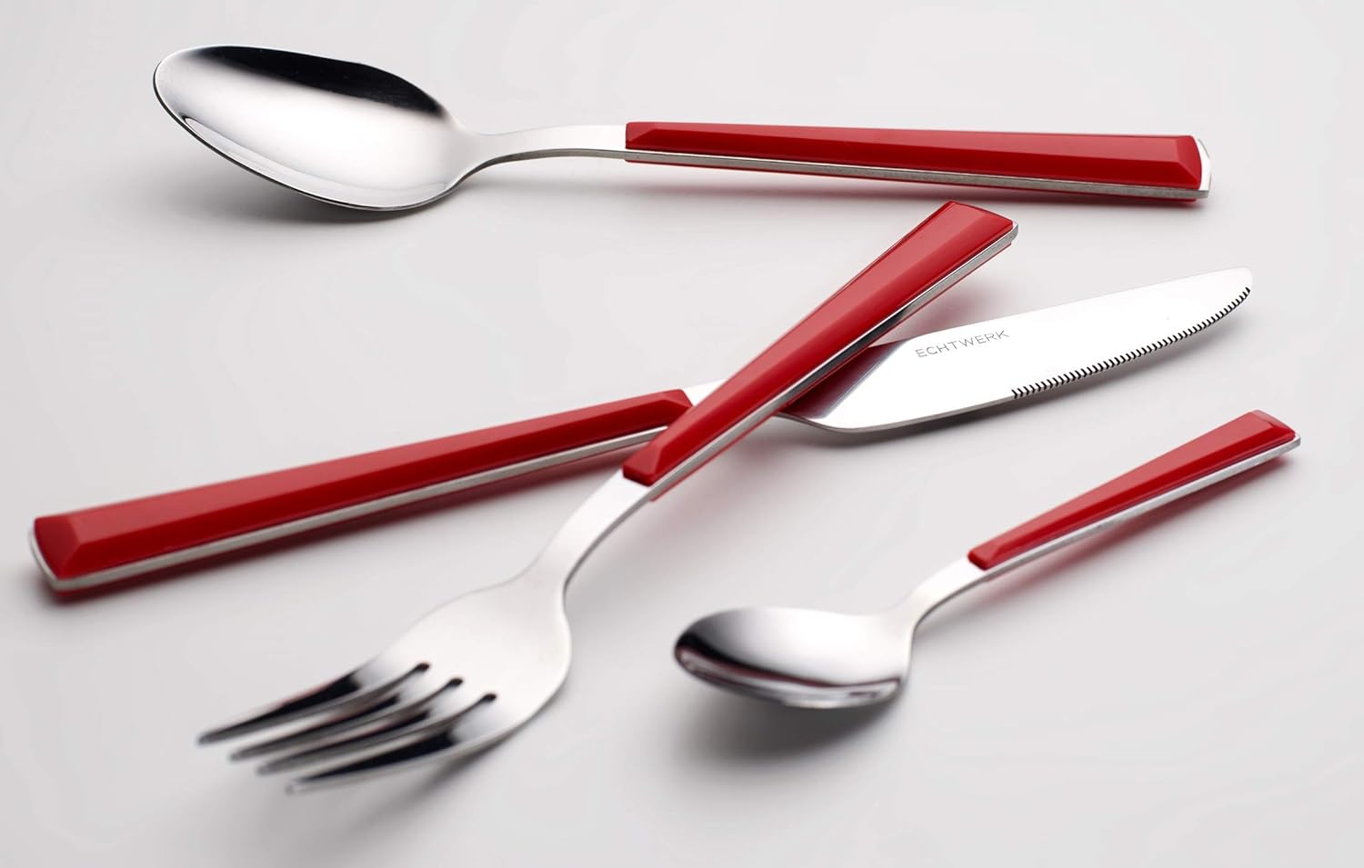 - Modernes Besteck Set mit Kunstoffgriffen in den Farben schwarz, creme, hellblau oder rot.